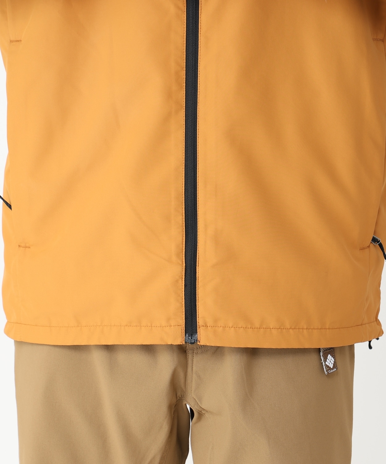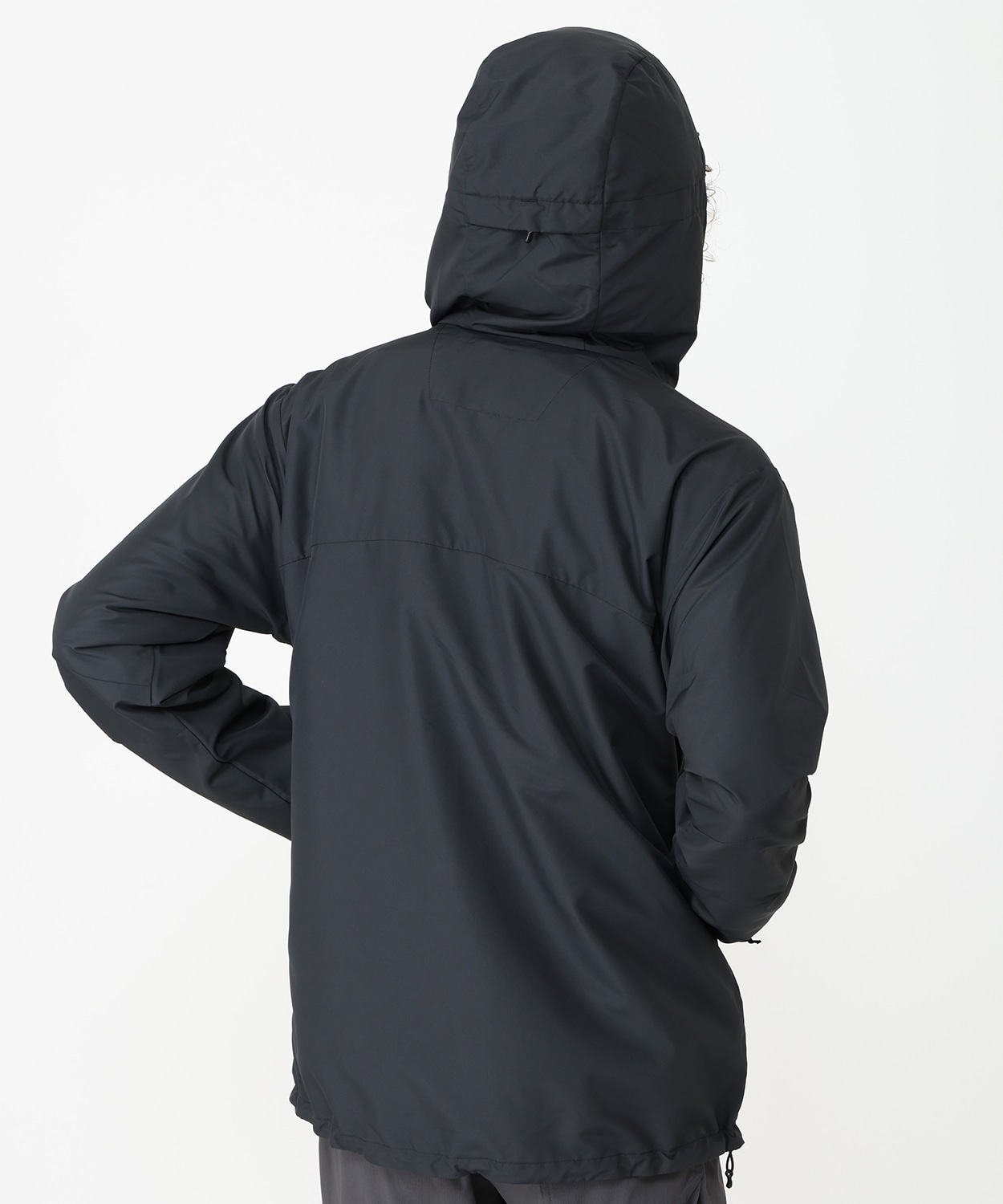 フード後頭部や裾にはワンアクションでサイズ調整ができるドローコードを設け、キュッと縛るだけでウェア内への冷気の侵入を防ぎます。両サイドには開閉しやすい、縦ファスナー仕様のハンドポケットを配置。