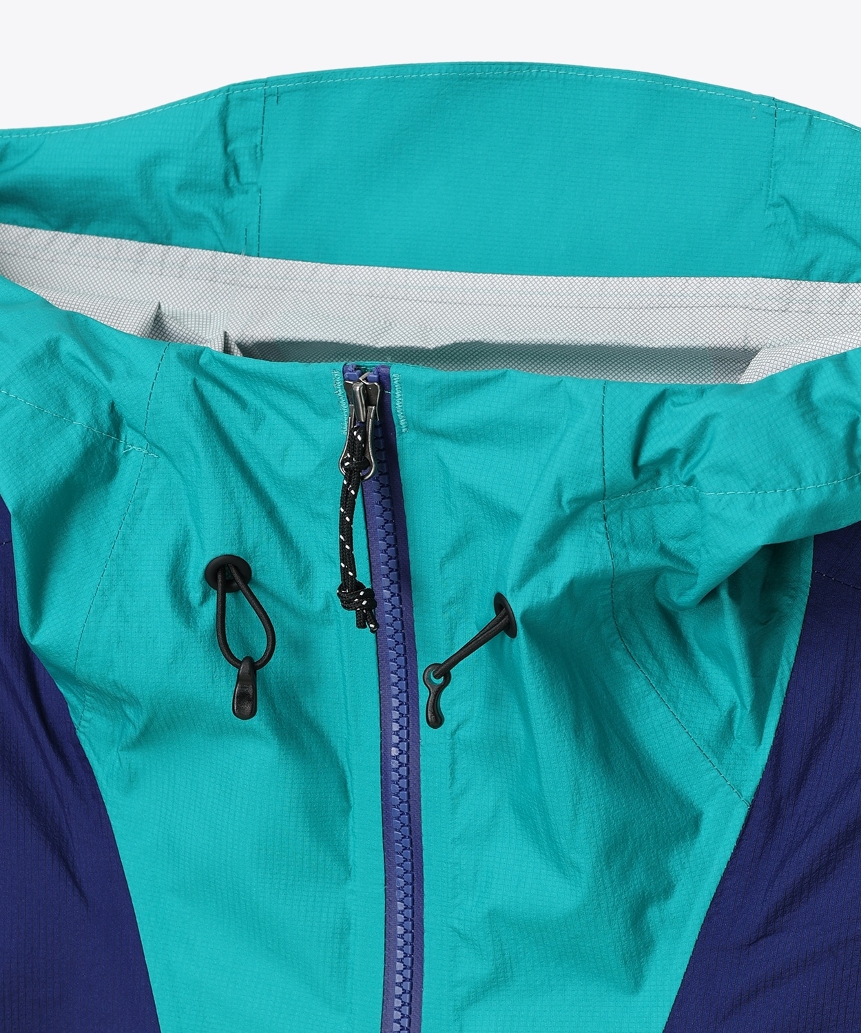 夏のハイキングに適した軽量でしなやかな質感をもつ、20Dナイロンリップストップ素材の2.5レイヤー(2.5層)のレインジャケット。