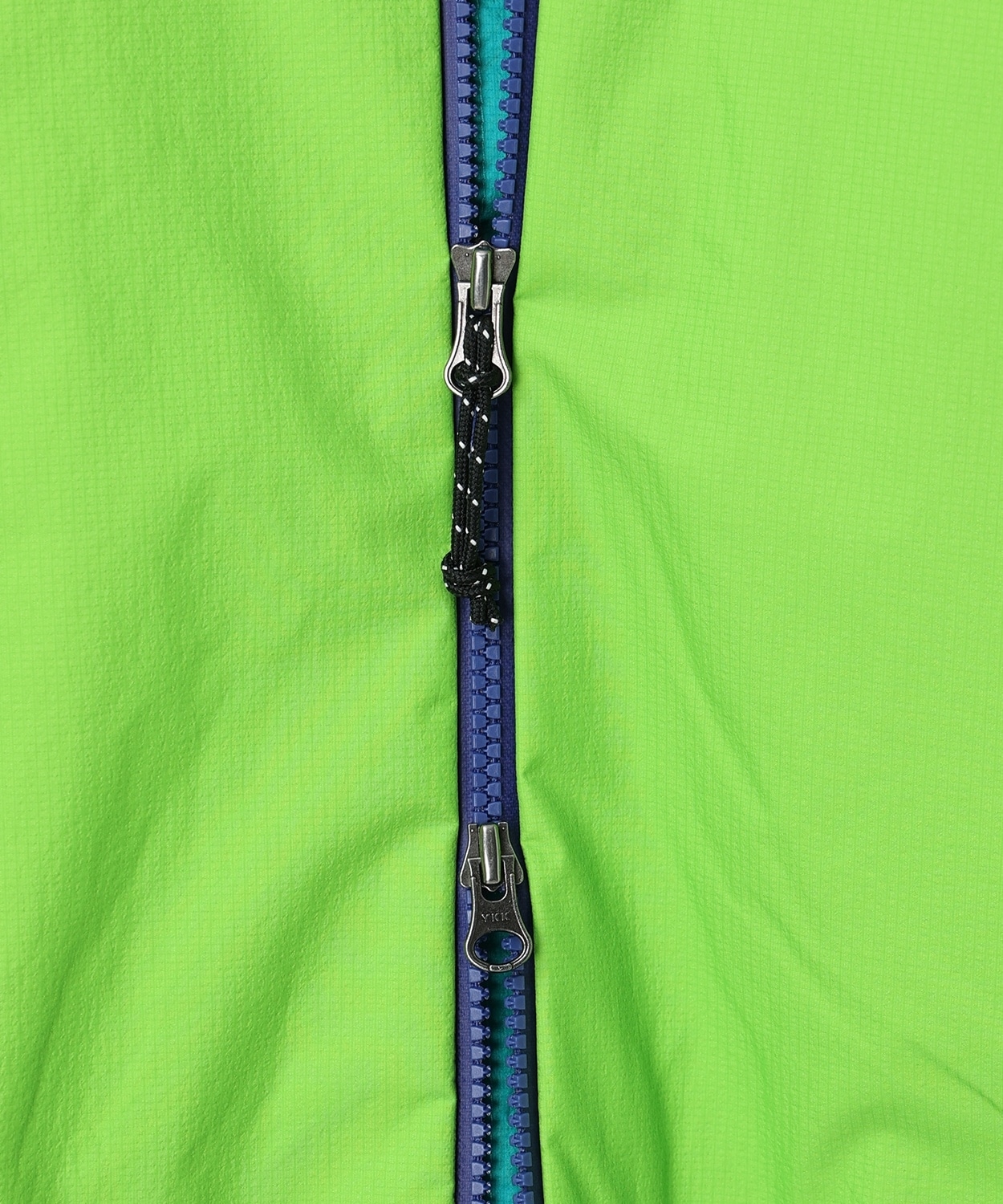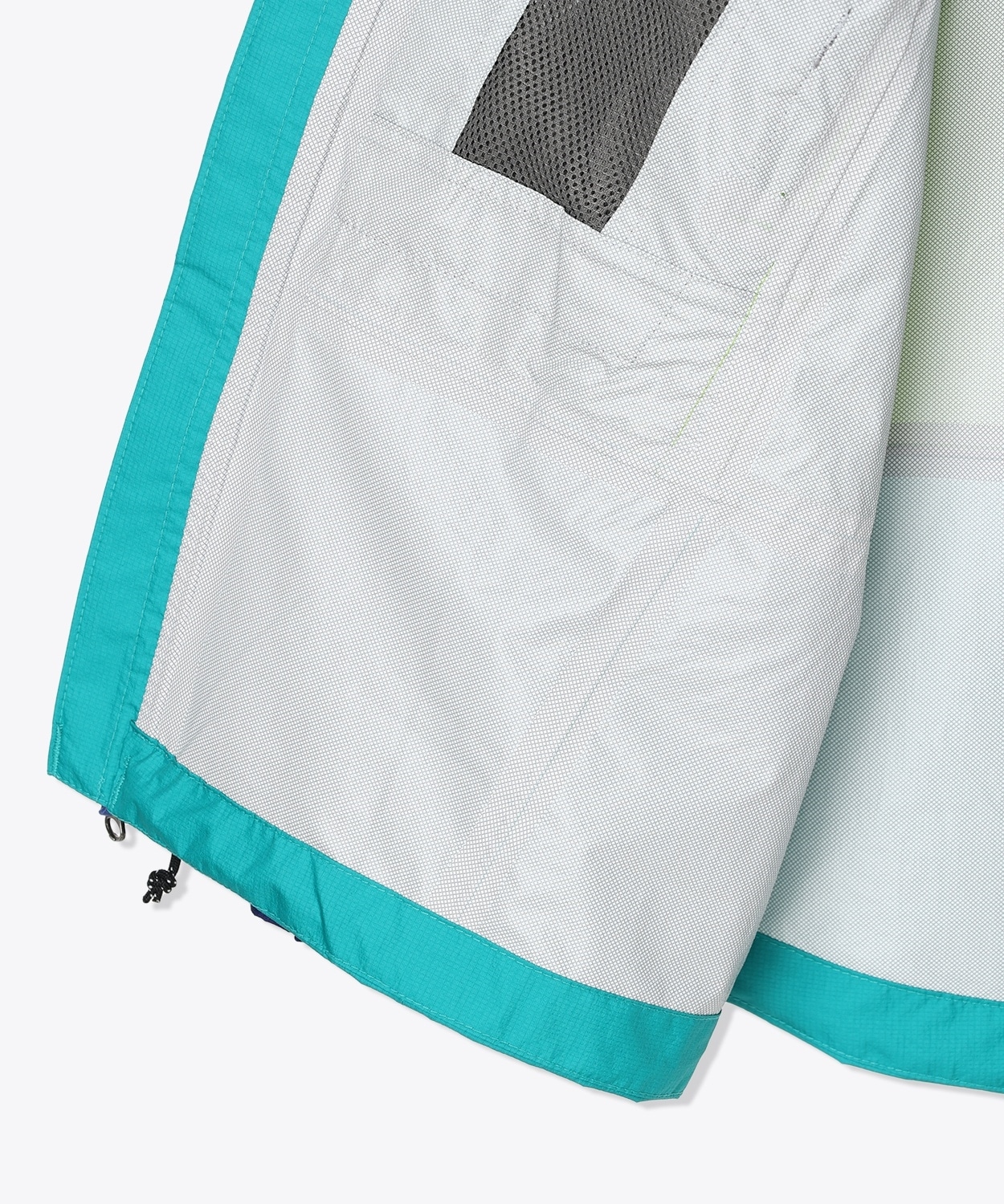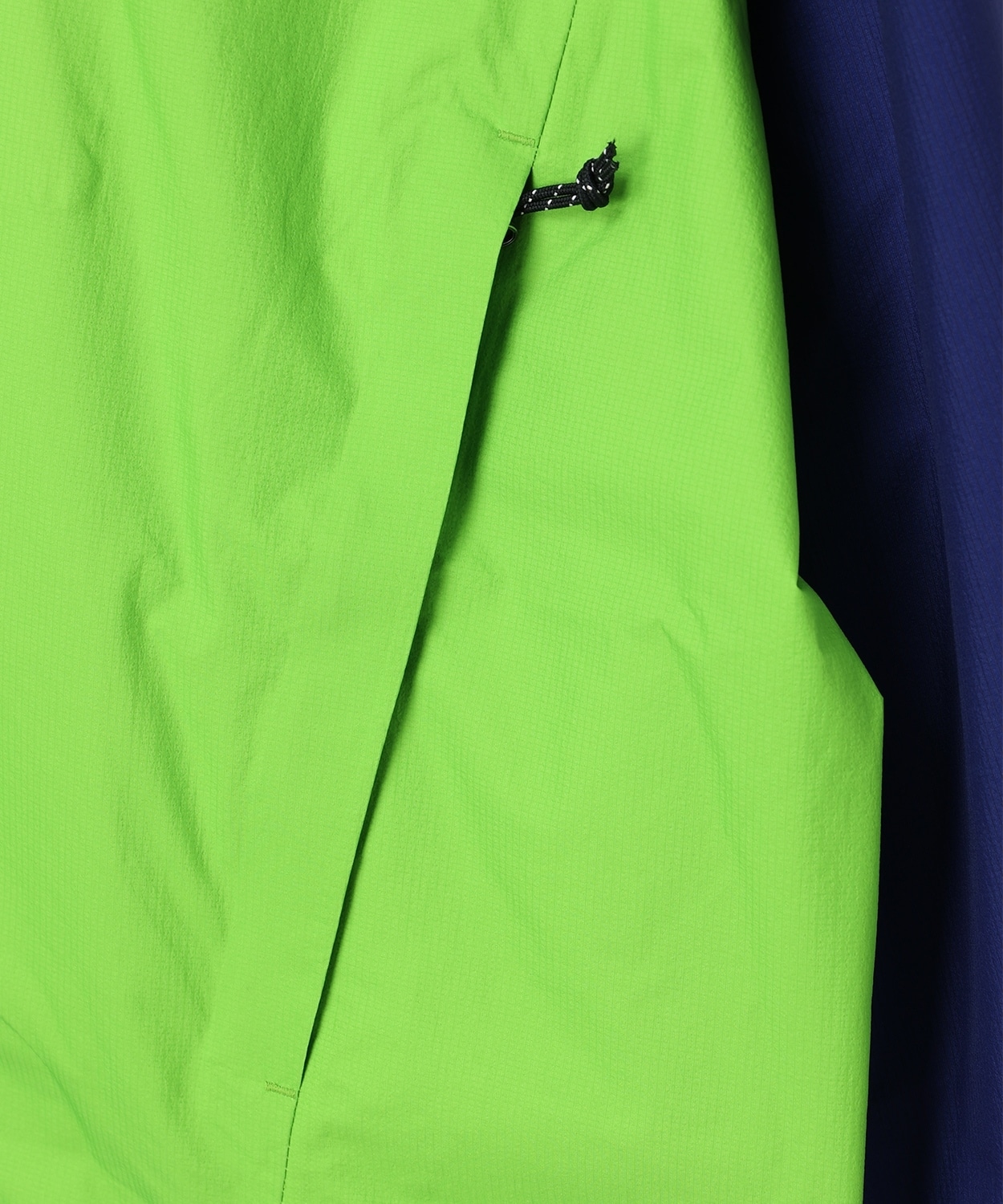 フロントファスナーは、動きを妨げにくいダブルファスナー仕様を採用。フードは、ヘルメットを着用する想定でゆとりのあるサイズ感に仕上げています。また、両脇部のユーティリティポケットには、ハーネス着用時もアクセスできる位置に配置し、ポケット裏地をメッシュ仕様にすることで、開けることにより、ベンチレーションとしても機能するなど、細かい部分にまでこだわりを込めました。