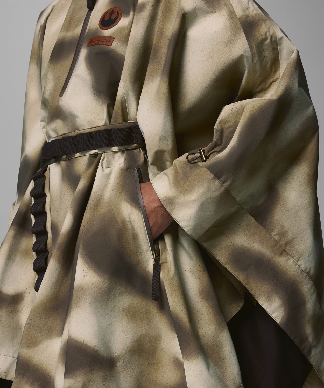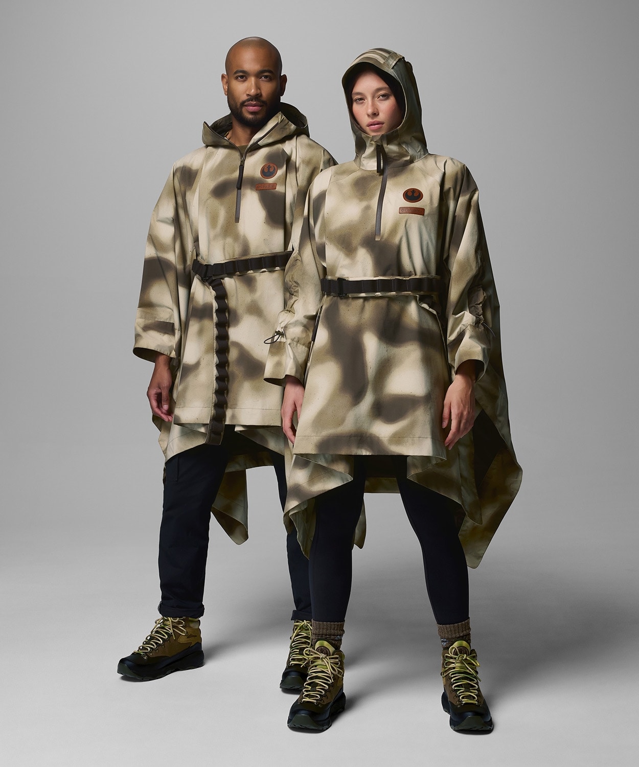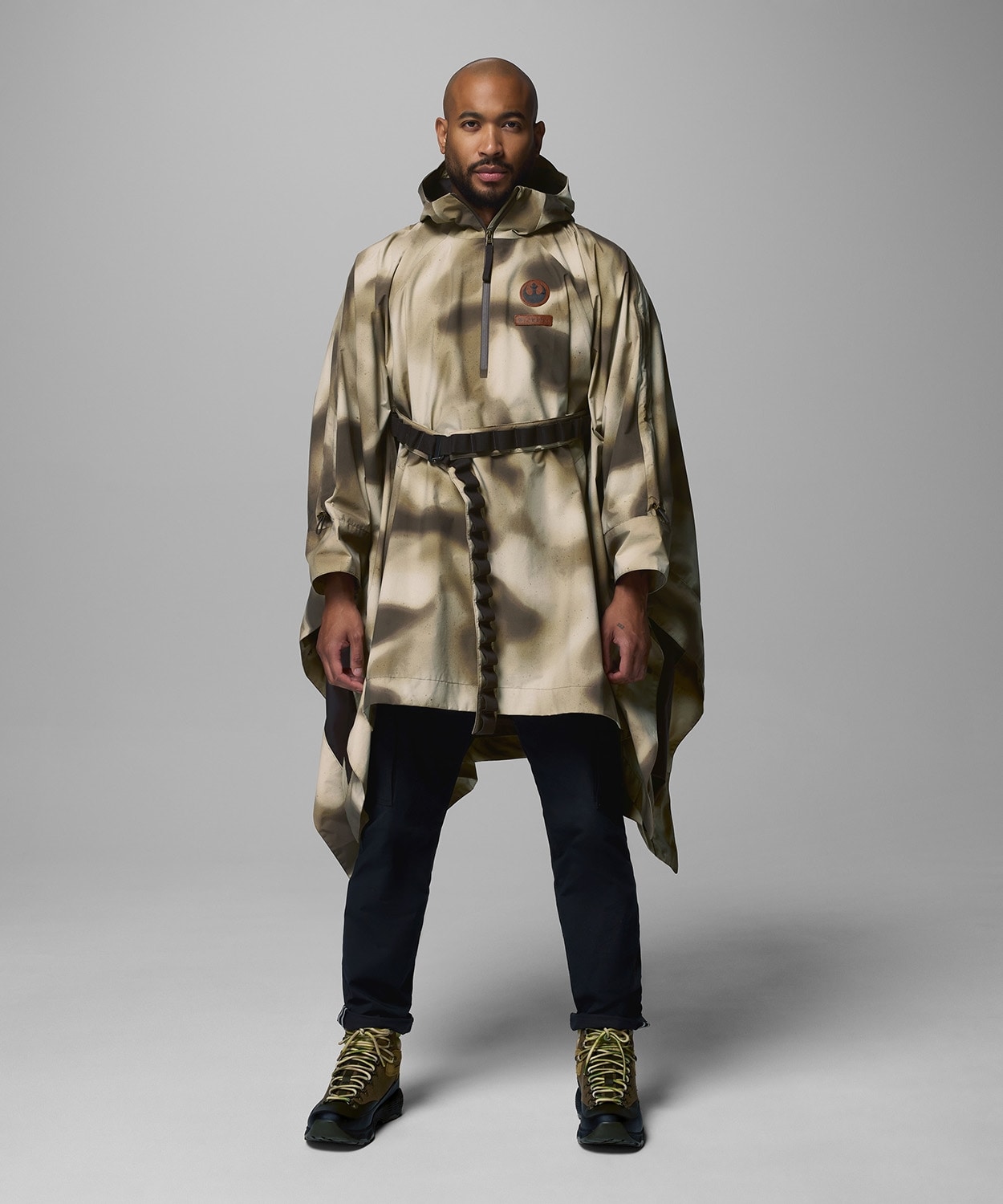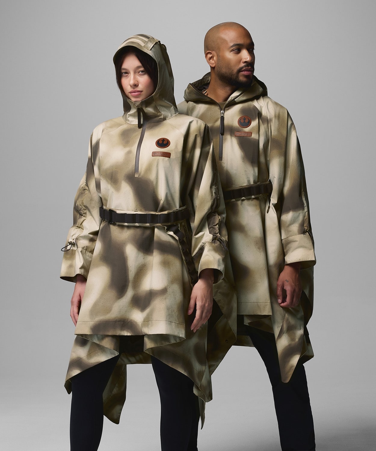 突撃部隊、編成せよ。多用途に使えるポンチョは、「エンドア」に降り立った反乱軍の戦士たちに着想を得ており、ハイキングからスピーダー・バイクまで、どんな自然界環境にも対応可能な防水透湿テクノロジーと本格的なディテールが取り入れられています。