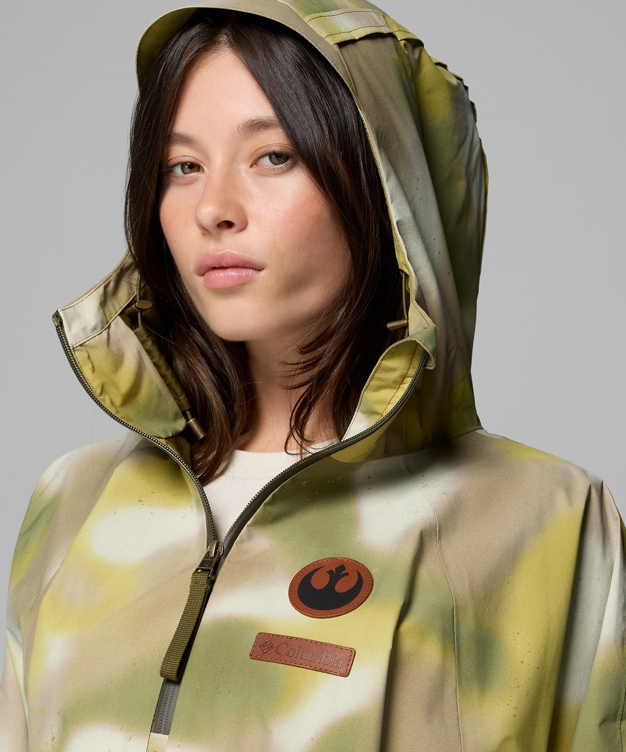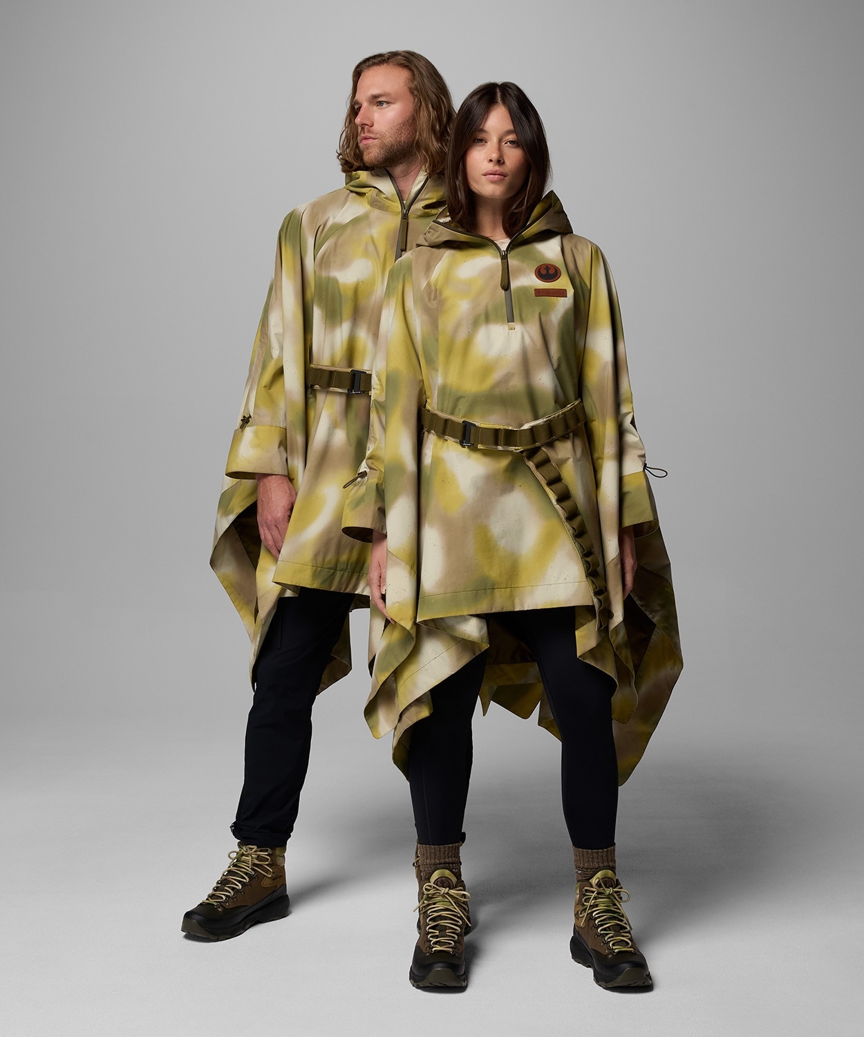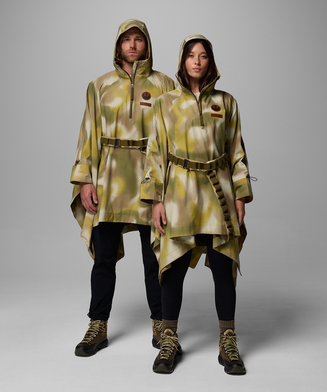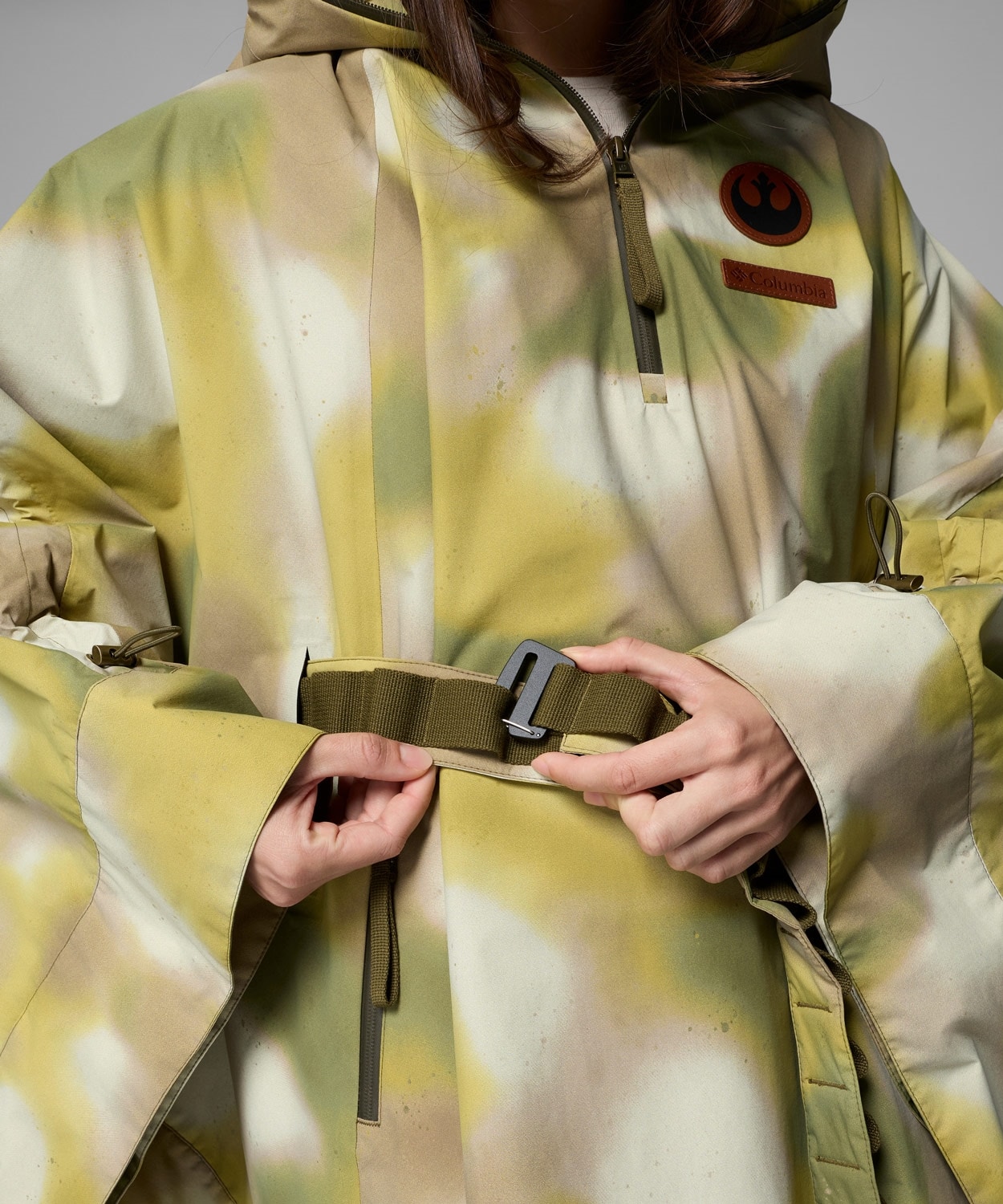 突撃部隊、編成せよ。多用途に使えるポンチョは、「エンドア」に降り立った反乱軍の戦士たちに着想を得ており、ハイキングからスピーダー・バイクまで、どんな自然界環境にも対応可能な防水透湿テクノロジーと本格的なディテールが取り入れられています。