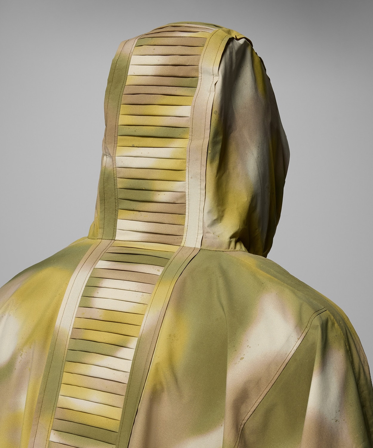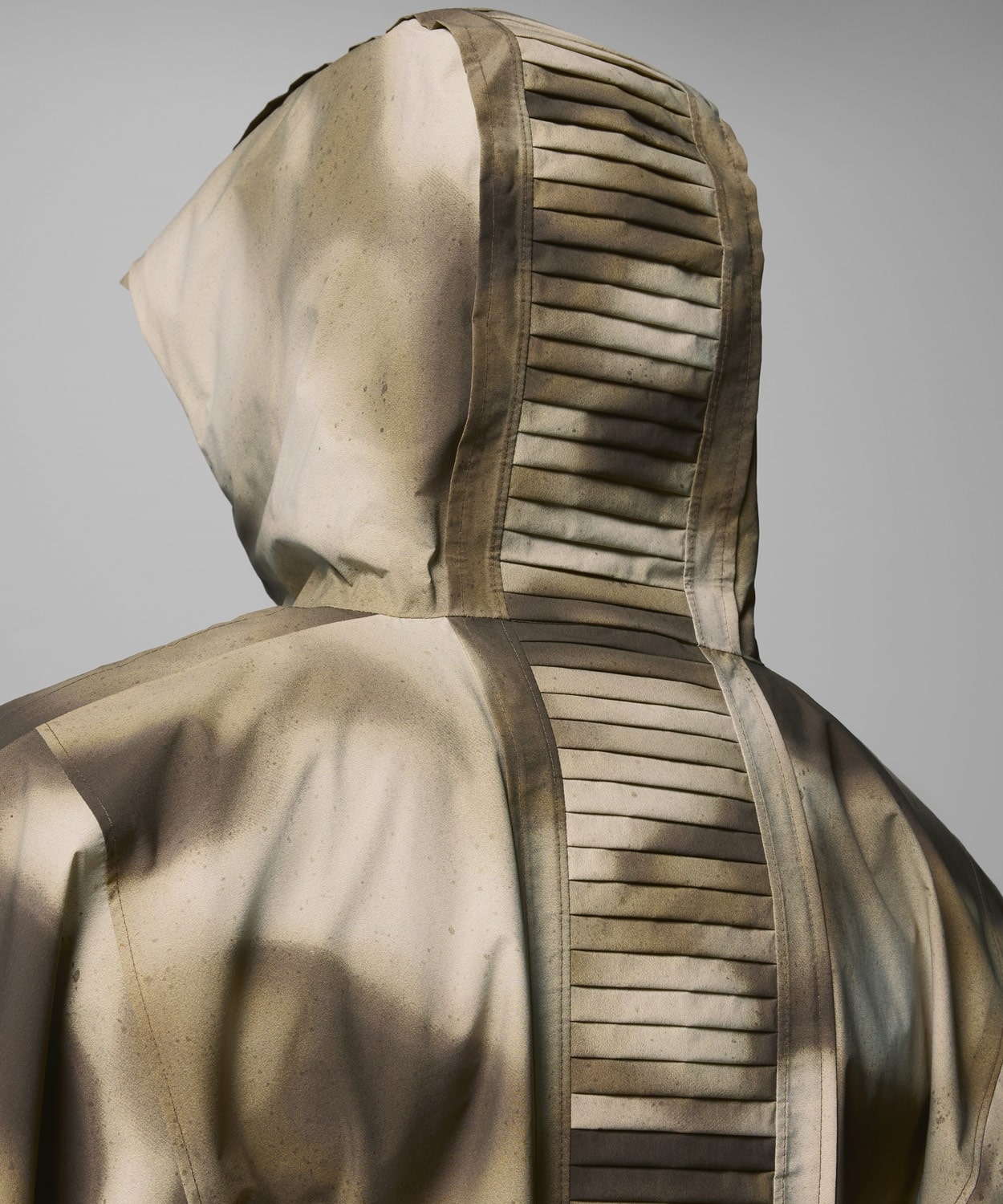 ・エンドアにヒントを得たプリーツをフードと背面に装飾し、目を引くデザイン