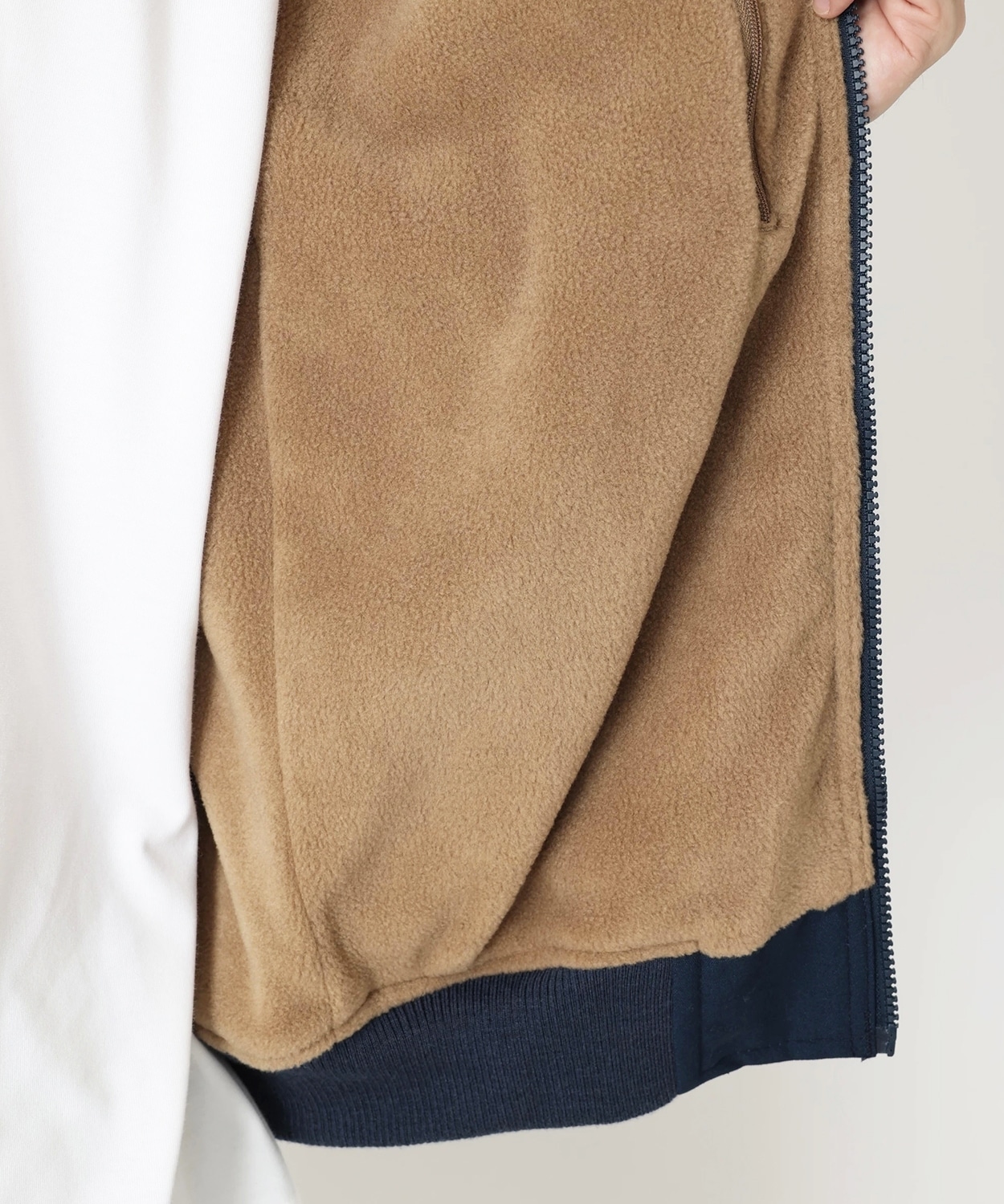 表:TCキャンバス(ポリエステル65% コットン35%) 身頃裏:MTRフリース(ポリエステル100%) 袖裏:210Tタフタ(ナイロン100%) 袖:中わた:スリムテック80g(ポリエステル100%)