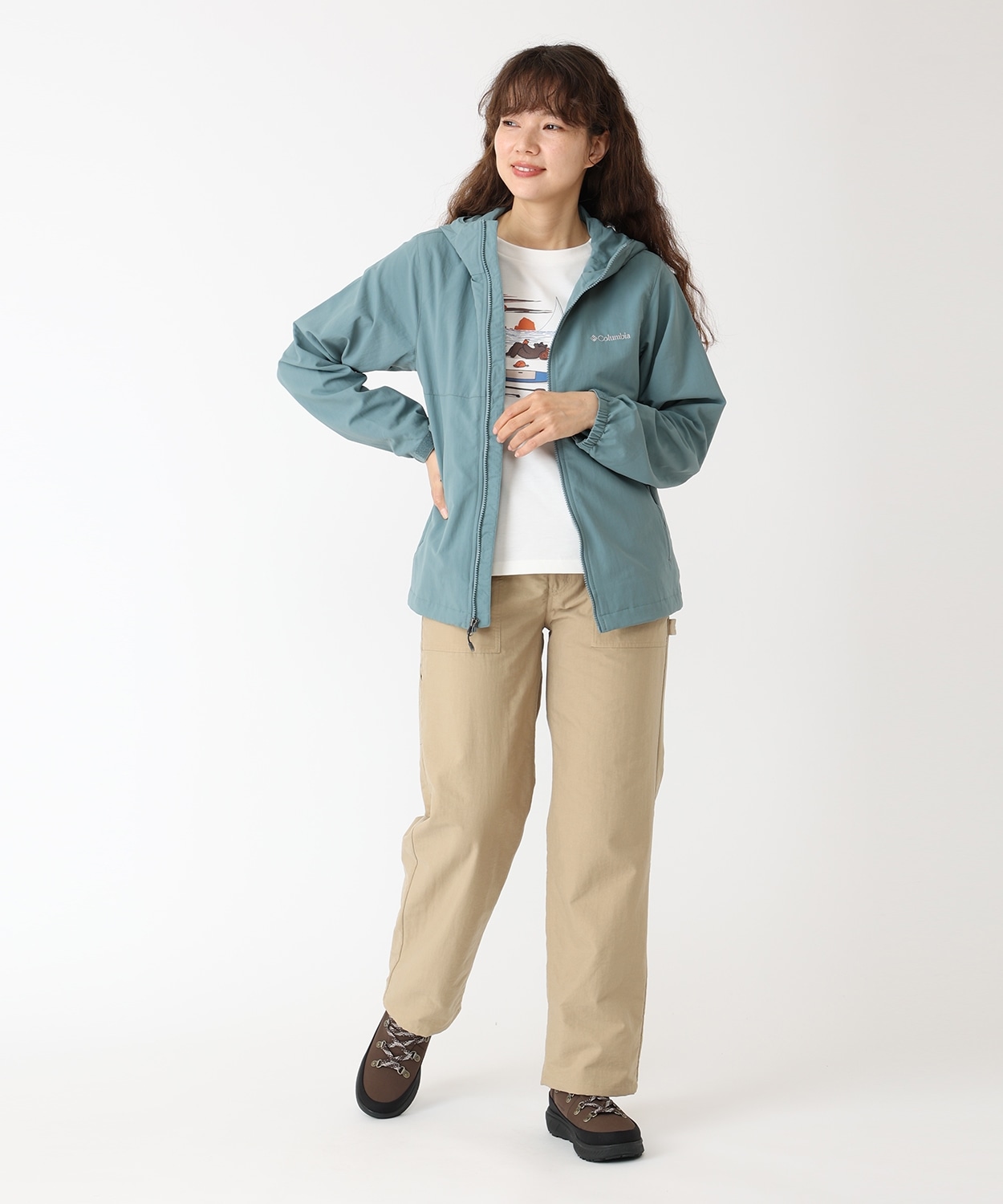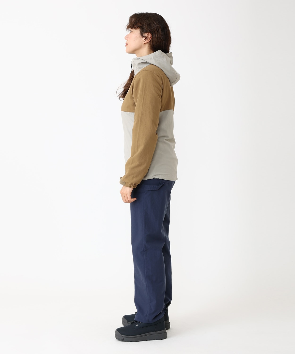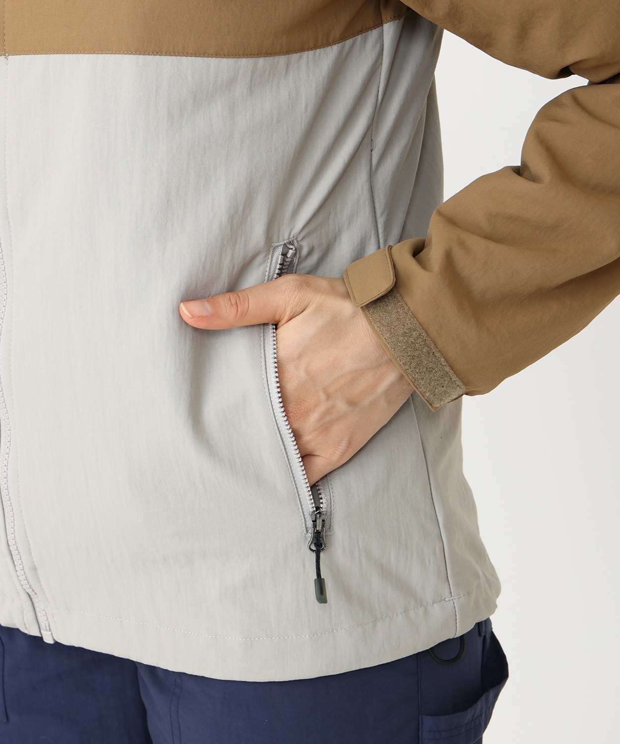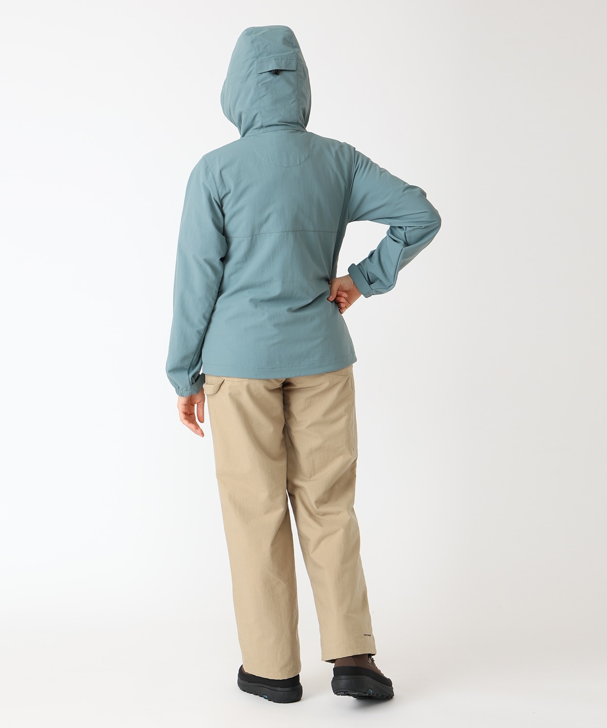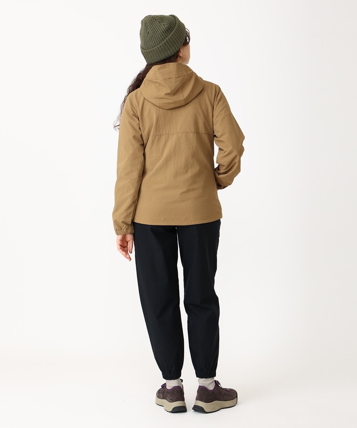 さらりとした質感で肌ざわりも良く、日差しの強い日も安心のサンプロテクション機能付き。フードや袖、裾はフィット感を調整できるアジャスターを設け、身幅に程よいゆとりがあり、ボリュームのあるインナーでも窮屈感がなく動きやすいのもポイント。ベーシックなデザインに仕上げ、低山ハイキングなどのアウトドアから日常までマルチに活躍します。
