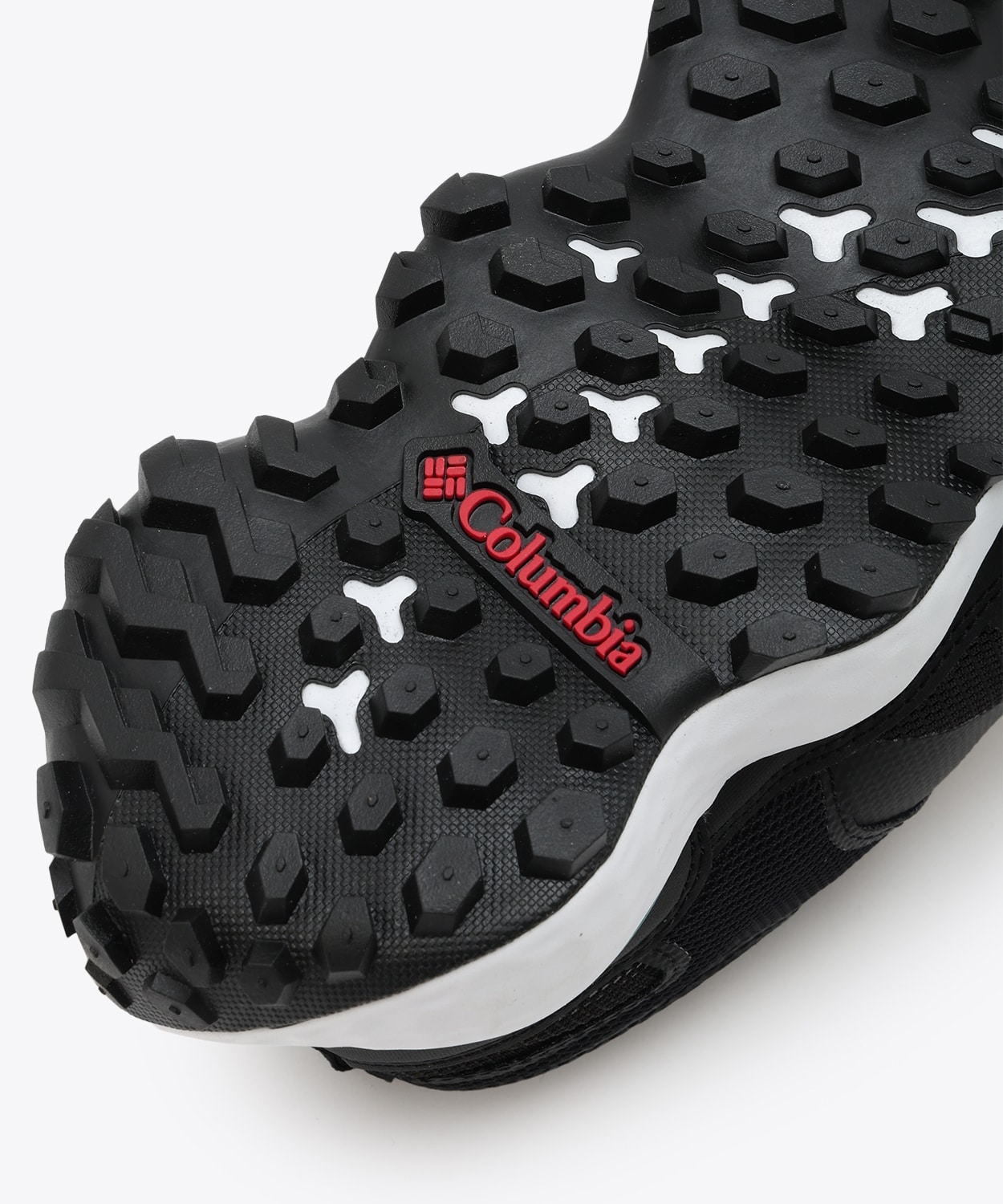 グリップを発揮するユニークなアウトソールコンバウンド。DRYだけでなくWETな環境でもグリップを発揮するユニークなアウトソールコンパウンド。計算されたラグ配置により地面に対し最適な接地を可能にし、高いトレイルパフォーマンスを実現。