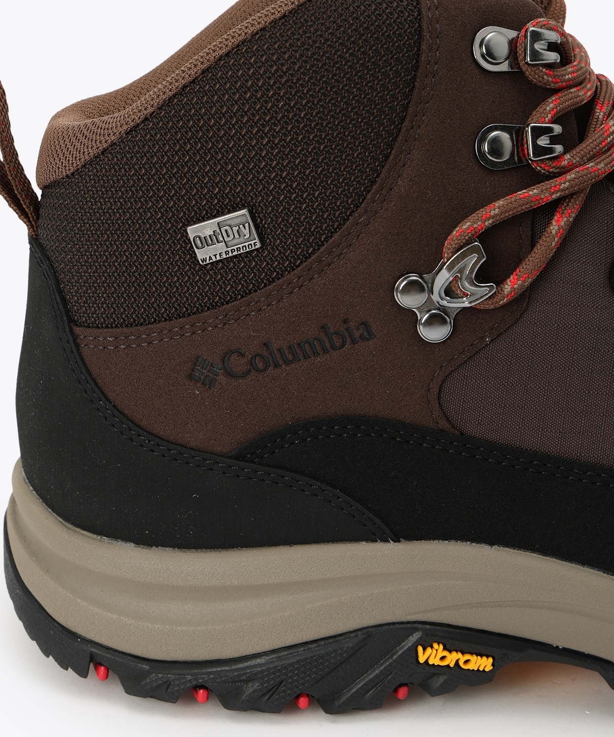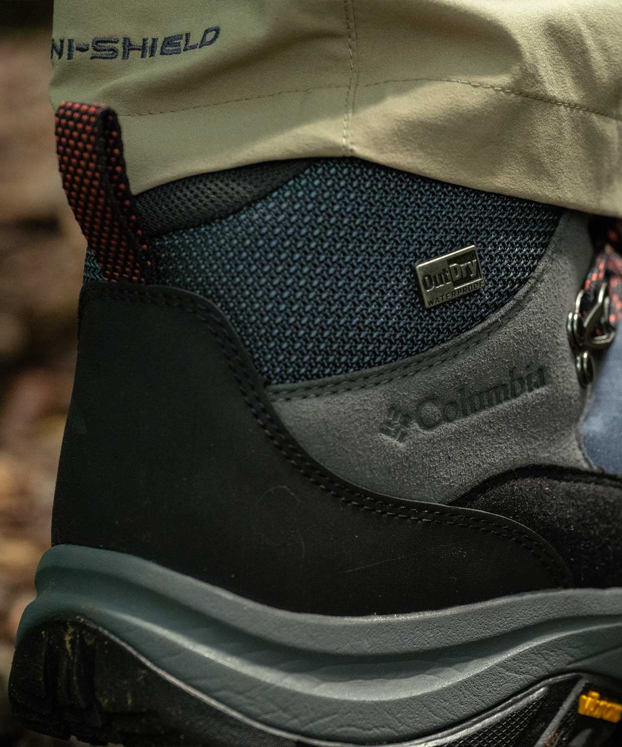 コロンビア独自の防水透湿機能「アウトドライ」が水の侵入を防ぎ、シューズ内を快適に保ちます。また、アウトソールは、高いグリップ力を誇るヴィブラム「メガグリップ」を搭載しているので、乾いた道はもちろん、雨水で濡れた地面でも高いグリップ力を発揮します。