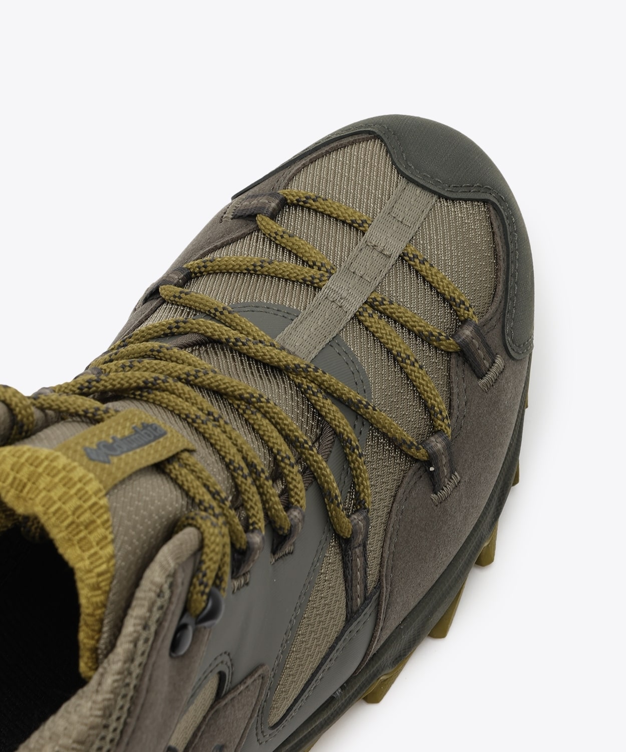 アッパーは目の細かいメッシュ素材を採用しており、通気性はもちろん、砂や小石が入りにくいことが特徴です。また、防水透湿機能「アウトドライ」が水の侵入を防ぎながらもムレを逃し、シューズ内を快適に保ちます。さらに、砂や泥などの汚れからシューズや靴下を保護するために、今シーズンより新たに登場したシューゲイター[PU2634:Saber Short Shoe Gaiter]が装着できる専用ループを配置しました。