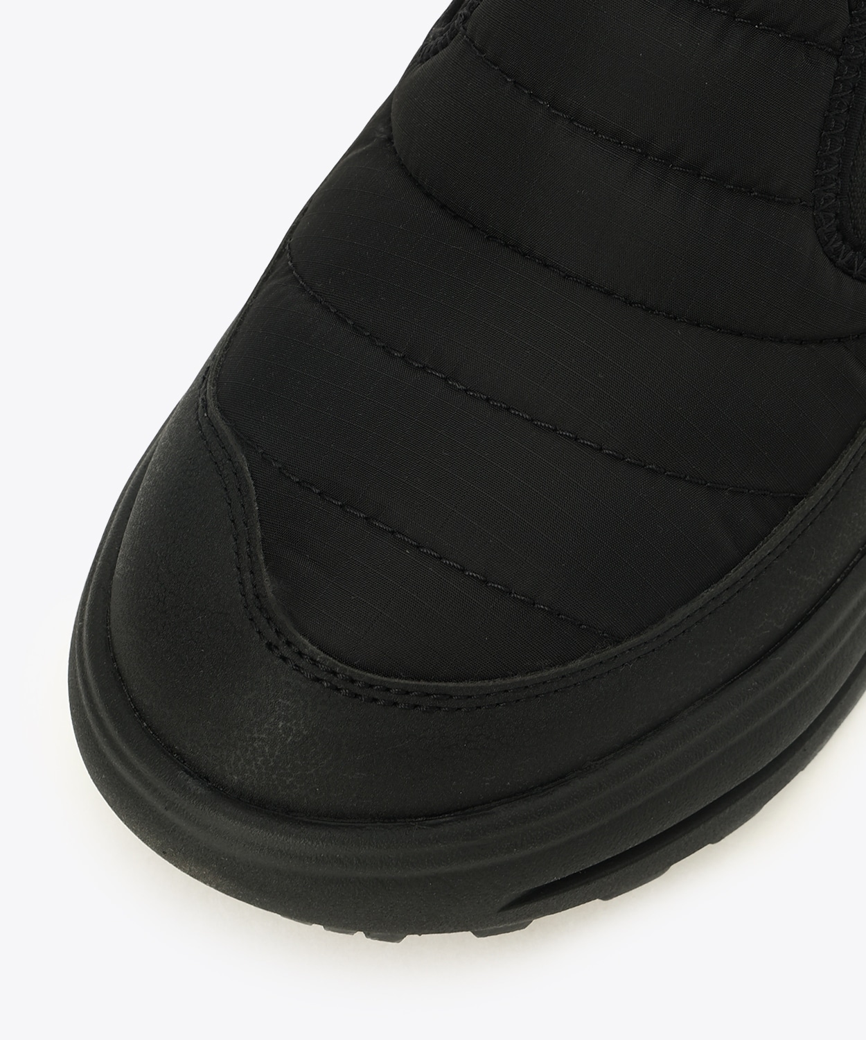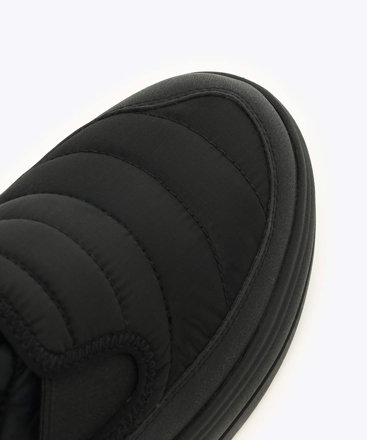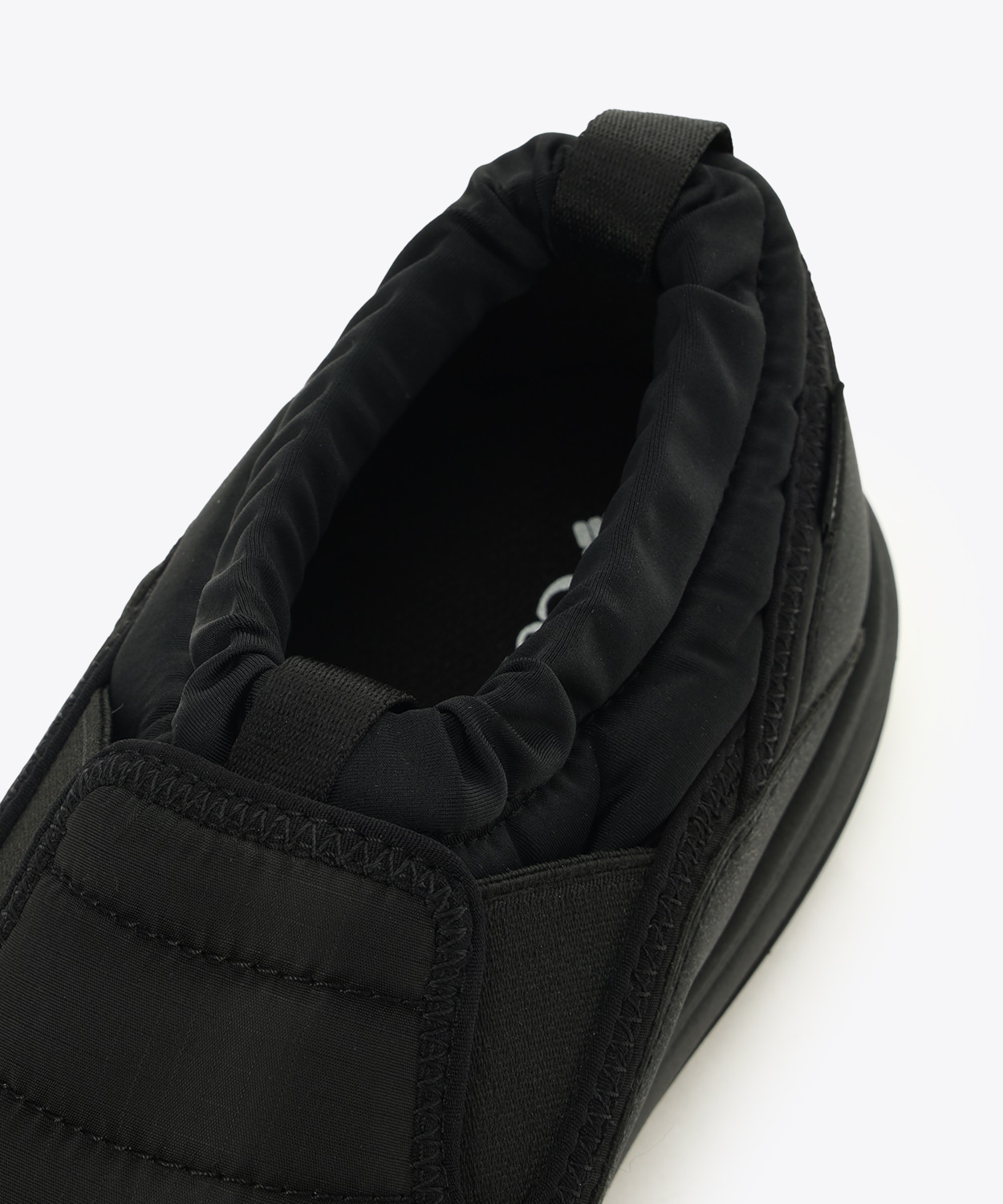 ウォータープルーフ仕様のアッパーは、優れた耐久性を持つリップストップナイロン素材に、履き口は足入れしやすいストレッチナイロン素材を採用。当シリーズ特徴の浮き輪のようなボリューミーなミッドソールデザインは継承しつつ、軽量化とクッション性を向上。さらに屈曲性を高めるなど、よりリラックスした履き心地を体感できる一足です。