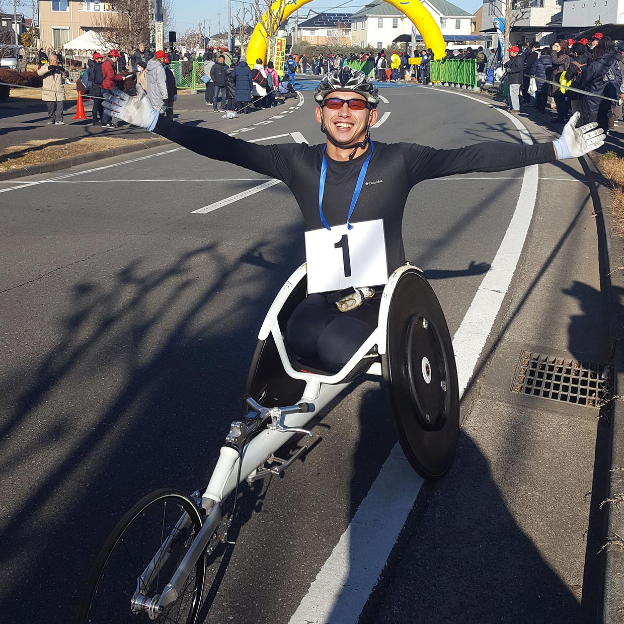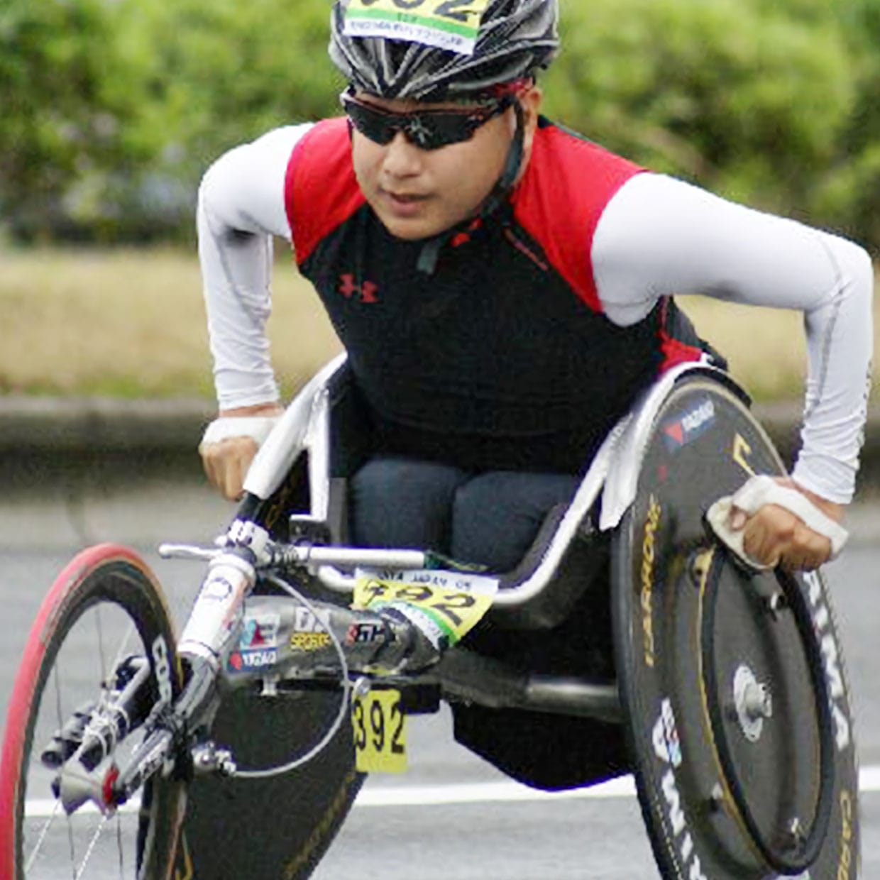 24歳のときに交通事故により車いすの生活になり27歳の時に車いすマラソンと出会う。