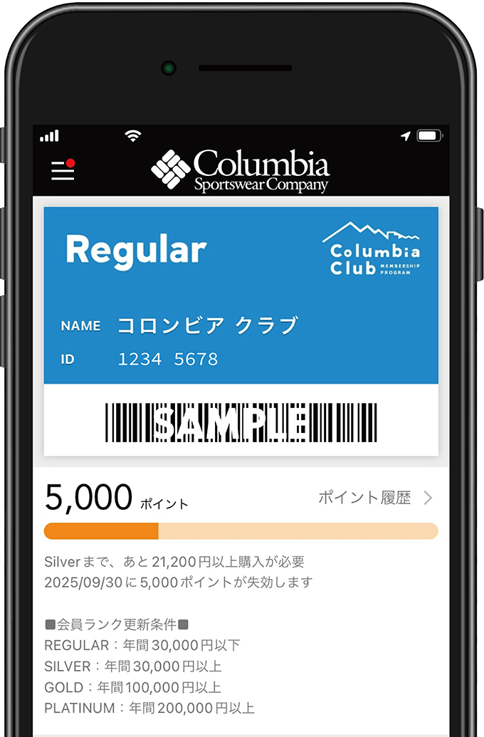 ポイントの使い方・詳細はこちら >コロンビアクラブ公式アプリ