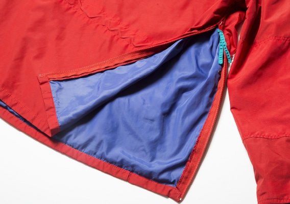 80年代に発売されたアノラックパーカ。一見するとシンプルなデザインだが、数々の機能性を備えている。まず、フロントには上下2段の大きなポケットを装備。下部は両サイドから開くジップポケット、上部は中にフリースを張ったハンドウォーマーポケットになっている。また、両脇の下にはジッパーをあしらっており、中の湿気を逃がすベンチレーションの機能を果たしている。さらにパッカブル仕様になっており、フロント下部のポケットに全体を詰め込んでコンパクトに持ち運ぶことが可能。携帯性が向上したことで、よりアクティブな行動が可能になった。また、緊急時のエマージェンシージャケットとしても重宝する。