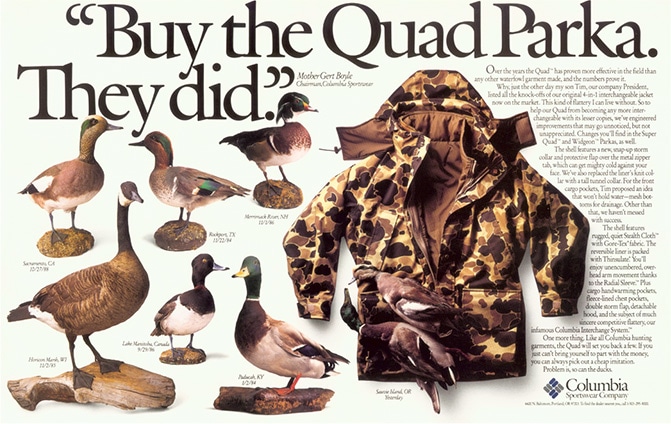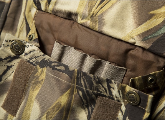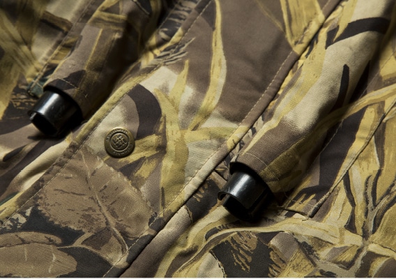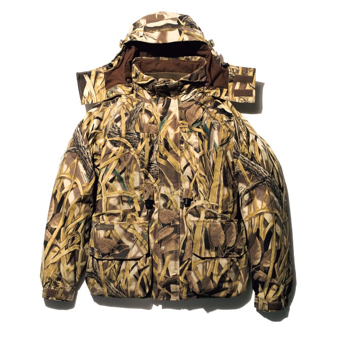コロンビアでは、80年代中頃から本格的なハンティングジャケットを作り続けており、スポーティングプロショップには必ず置かれているほど高い信頼性を獲得。このクアッドパーカも、ハンティングに特化した数々の機能的なディテールを備えている。コロンビアが開発したインターチェンジシステムを採用しており、ダウン入りのインナーを付け外しすることで状況に応じた着方が可能。また、フードも着脱できるようになっている。他にも、ポケットの中やインナーのダウンの胸元など、随所にブレットホルダーを備え、獲物の血がたまらないように考慮したメッシュポケットを配するなど、実践的な作りが際立っている。