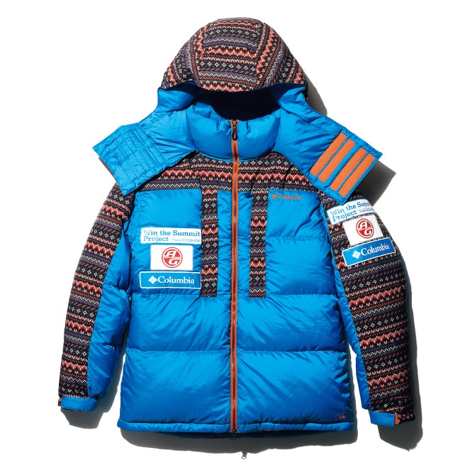 8000メートル級の山にも登れる本格的な登山ウェアを作るべく、日本企画で開発されたダウンジャケット。国際山岳ガイドの近藤謙司氏とともに1年をかけて開発した。身体から出る熱を反射させて保温性を高めるコロンビア独自の機能「オムニヒート」を裏地に採用しており、ダウンの量を減らして動きやすくしつつも十分な保温性を確保している。また、酸素ボンベをセットするために襟元のフラップを長めにとったり、ハーネスを付けやすくするためにウエストのポケットを排するなど、登山に特化したディテールを採用。前述の近藤氏は、このウェアを着用して、5度のエベレスト登山に挑戦し、3度の登頂に成功している。
