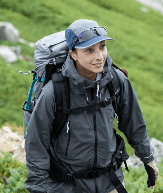 雨も蒸れも防ぎ、天候変化にも安心