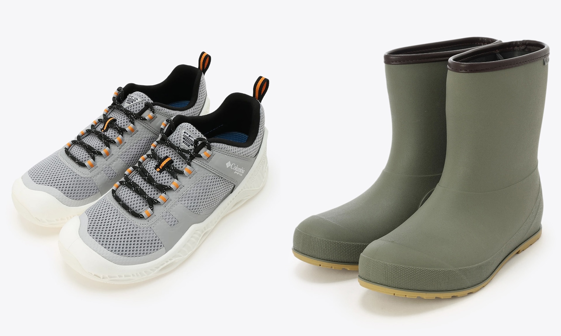 PFGシリーズの足元を覆う面積が少ないスニーカータイプは、快適な釣りを楽しみたい方はぜひ! フィッシング時に発生する汚れ(魚の血痕など)をプロテクトするオムニシールドブラッドアンドガッツを採用し、高いグリップ力も船上向きです。一方で、コロンビアで長年愛されているラバー素材のショート丈レインブーツは防水性が抜群。足が疲れにくいのも、釣りを長時間する場合は助かるポイントです。