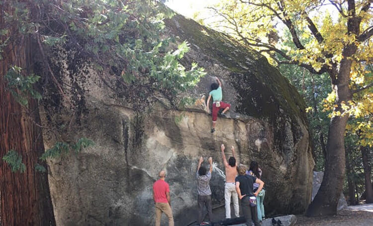 「ヨセミテといえばcamp4と言われるぐらい有名なスポットで、その中にある大きな岩に“Midnight Lightning”と呼ばれる伝説的なコースがあるんです。初めてそこをクライマーが登ったのが1978年で、ありえないぐらいに身体を浮かせて岩を掴んでいる写真が日本のクライミング雑誌に掲載されて、そこから国内でもムーブメントが起きました。僕がヨセミテを選んだのも“Midnight Lightning”に登りたかったからです」