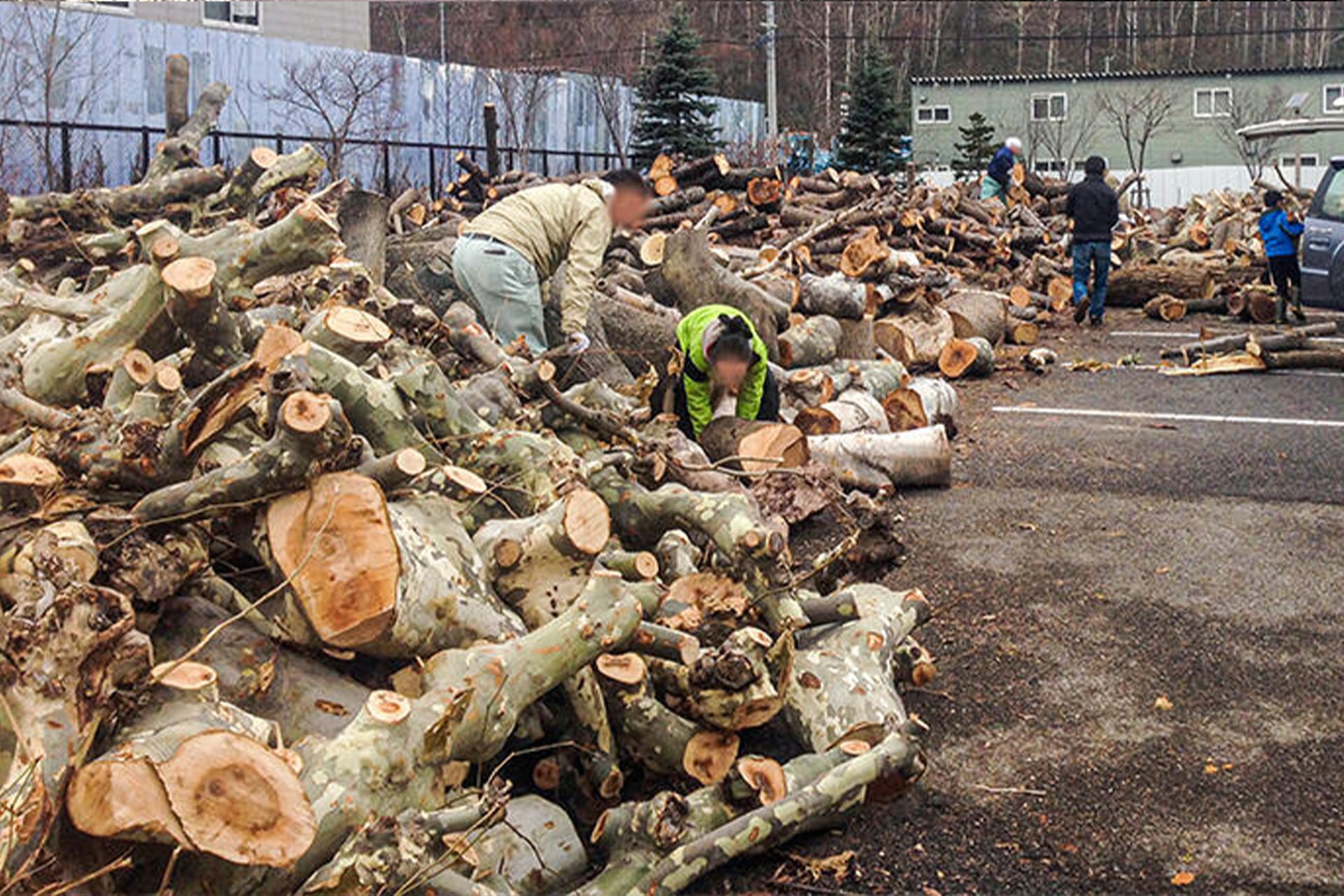 チラチラと横目で観察すると、見るからに「薪」を目的にしている人は6割ぐらいで、その他の人は、珍しい木や、綺麗な木を選んでいる人も多いように思った。
