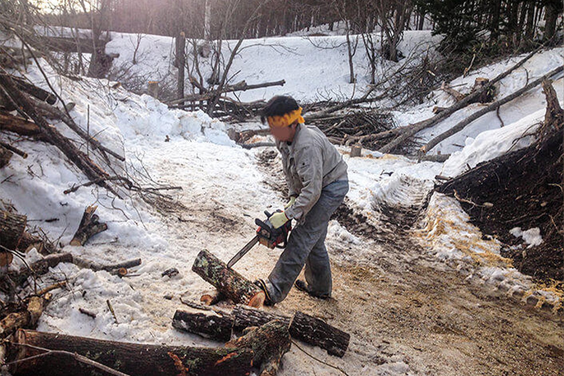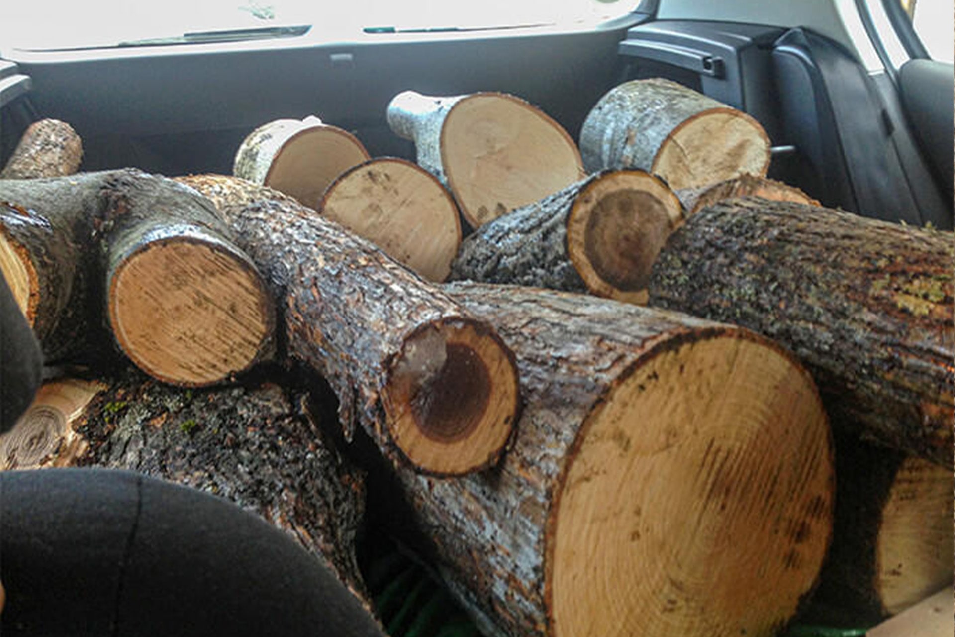 その職場では資材置き場のために雑木林の土地を購入し、土地をならすために開墾している最中だと言う。その過程で大量の丸太が出ている、このままでは処分するだけなので必要なだけあげる、と連絡をもらった。