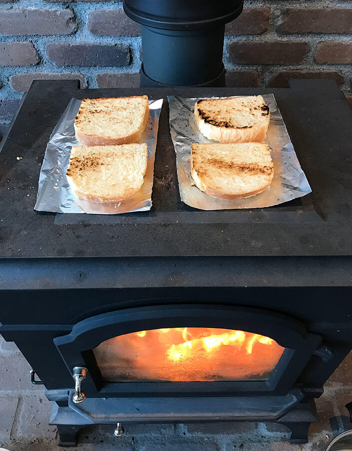 ゆえに、朝起きる→薪ストーブを着火→家族を起こす→パンをのせて焼き→朝食に、というのがとても自然な流れ。同時にお湯を沸かしたり、スープも作るし、もちろん、おにぎりを焼いてもうまい!