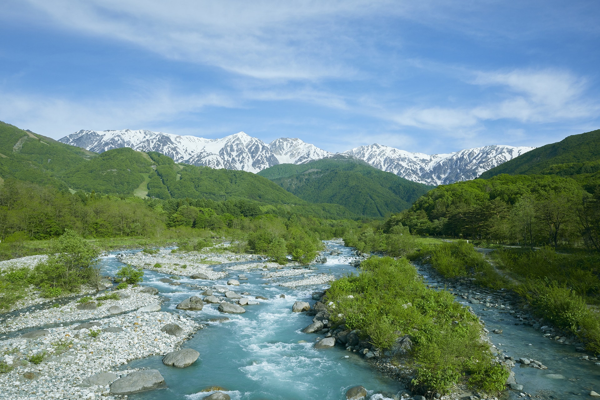 もちろんアルパインエリアの良さもありますが、各ゲレンデが近いことも良いですね。ゲレンデからゲレンデのハシゴができるのが嬉しい。グリーンシーズンは松川によく行きます。川沿いの道をスケートでクルージングしたり、犬の散歩をしたり。あとは、隣の大町になりますが青木湖。SUPでクルーズすると、海外にも負けない抜群のロケーションだと思ってます。
