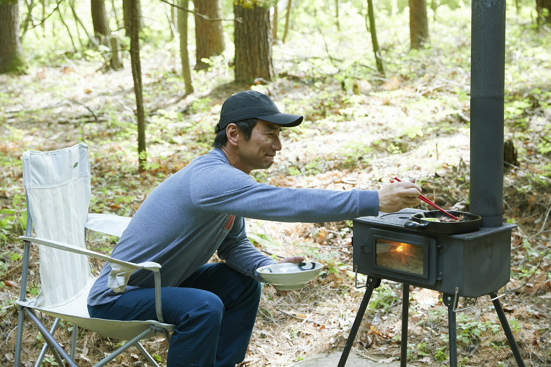 よく火を焚いています。昼間だったらお茶を飲んだり、夜だったら焼肉をしながらお酒を飲んだり。真冬もダウンを着ながら焚き火をしていました。自分でリフォームしたり、ガレージにホールドを付けたり、やることは尽きません。安曇野(あづみの)に初めて引っ越してきた時は、ちょっと違和感があったんです。でもここは、越してきた頃からすんなり馴染めた。今では、昔から長いことここに住んでいたような気がします。