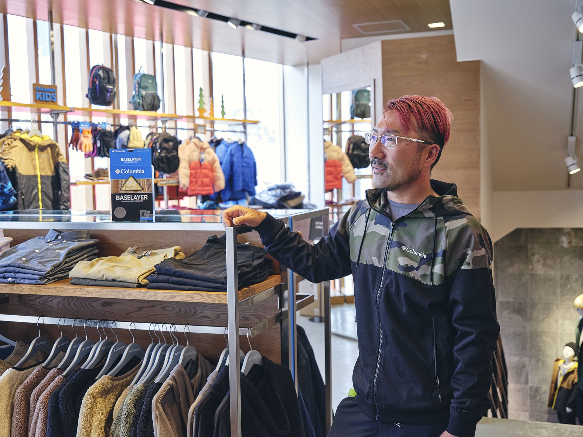 ここからは今回訪問しているコロンビア原宿店の中で、秦さんにおすすめのコロンビアウェアをピックアップしていただきました。プロの目線でチョイスしたさまざまなアイテムをご紹介します。