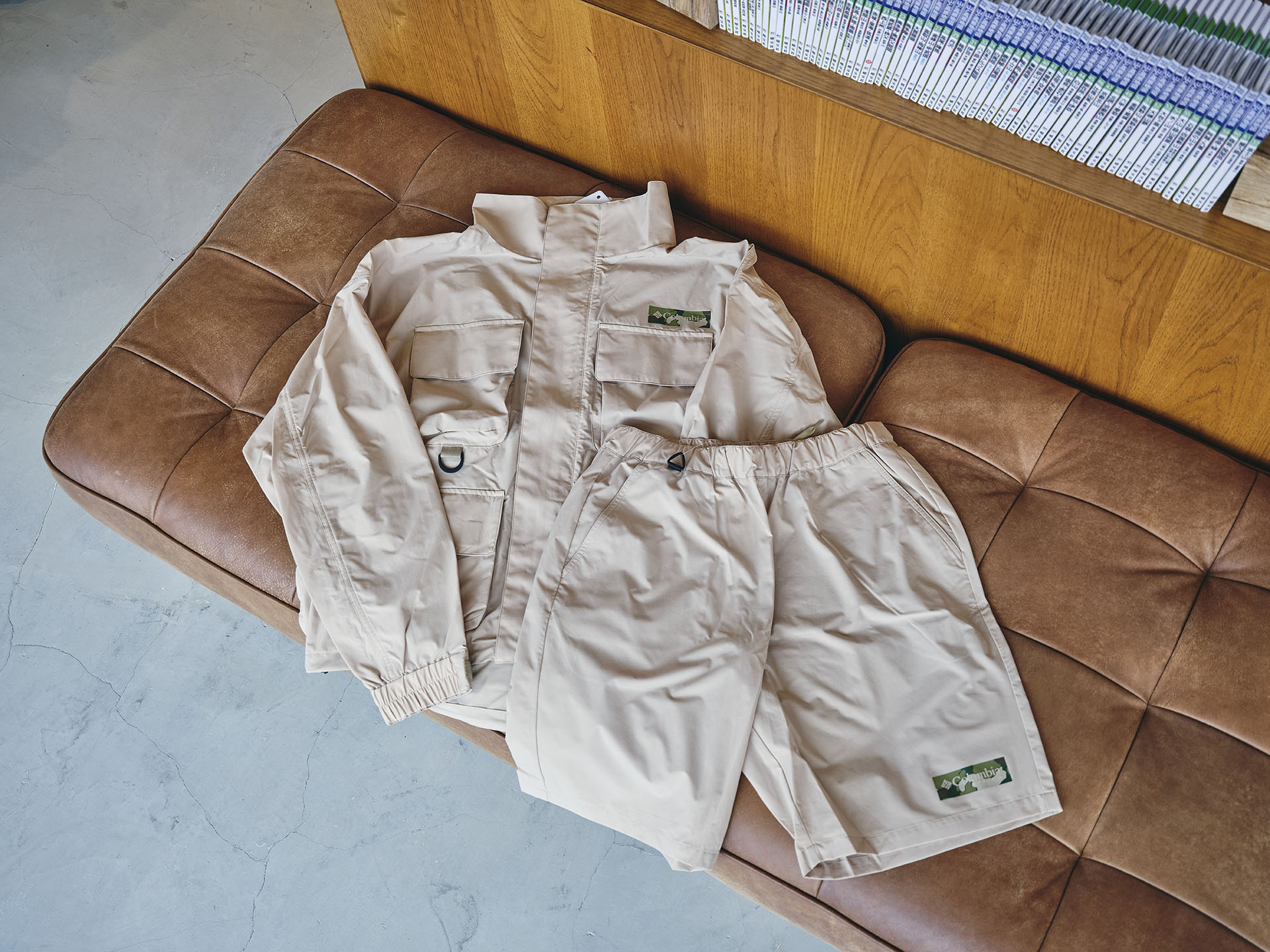 2023年春発売の新アイテムからは、PFGと秦さんがコラボレーションしたセットアップをチョイス。街着としても使いやすいスタイリッシュなデザインが特長で、ジャケットのフロントに4つ配置されたマチ付きのポケットは、替えの糸や針、ルアーなどを収納する際に役立ちます。