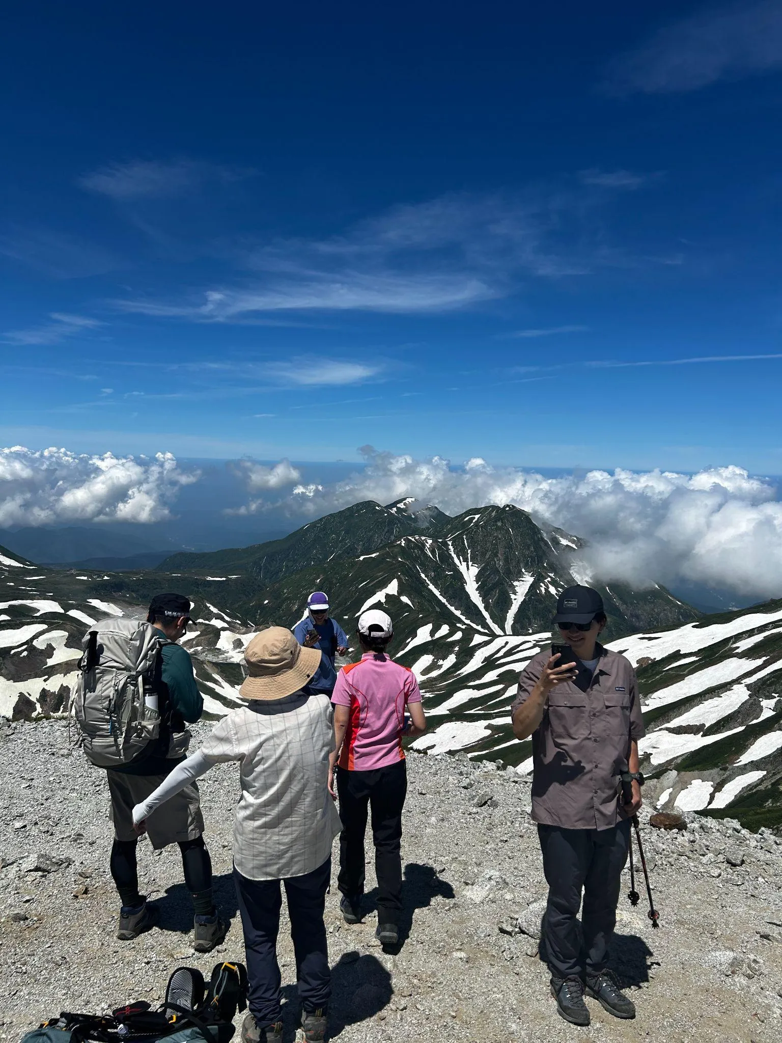 浄土山山頂では景色を楽しみ、軽食をとって立山連峰の自然を目に焼きつけている様子でした。