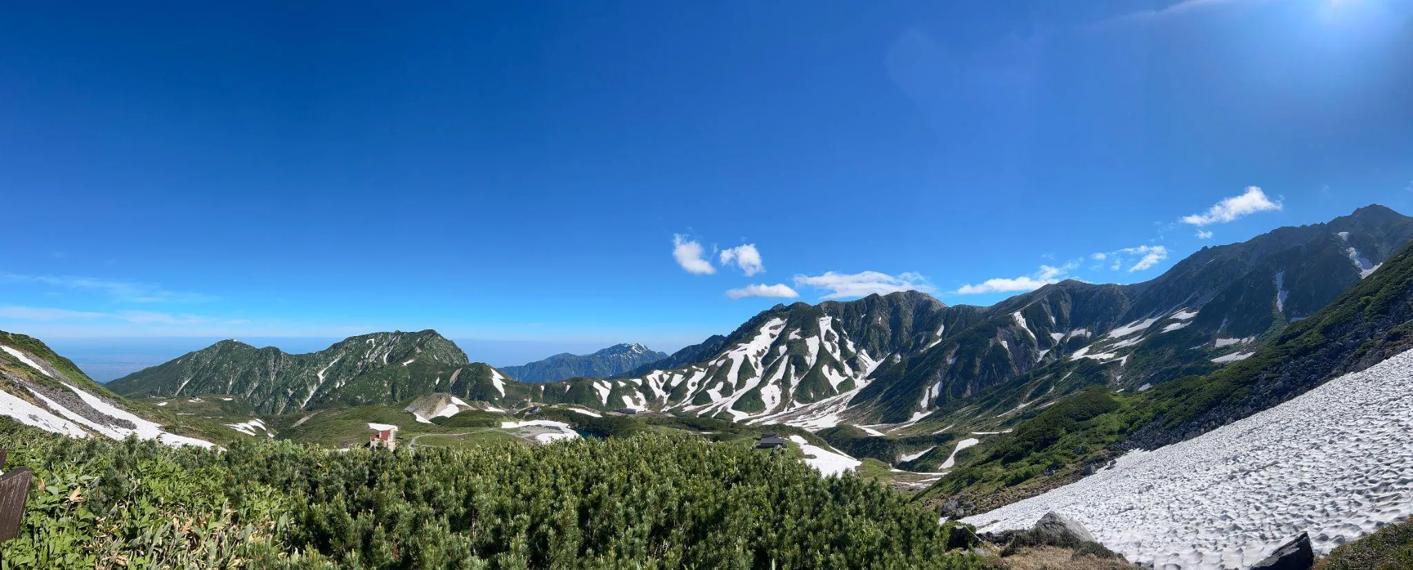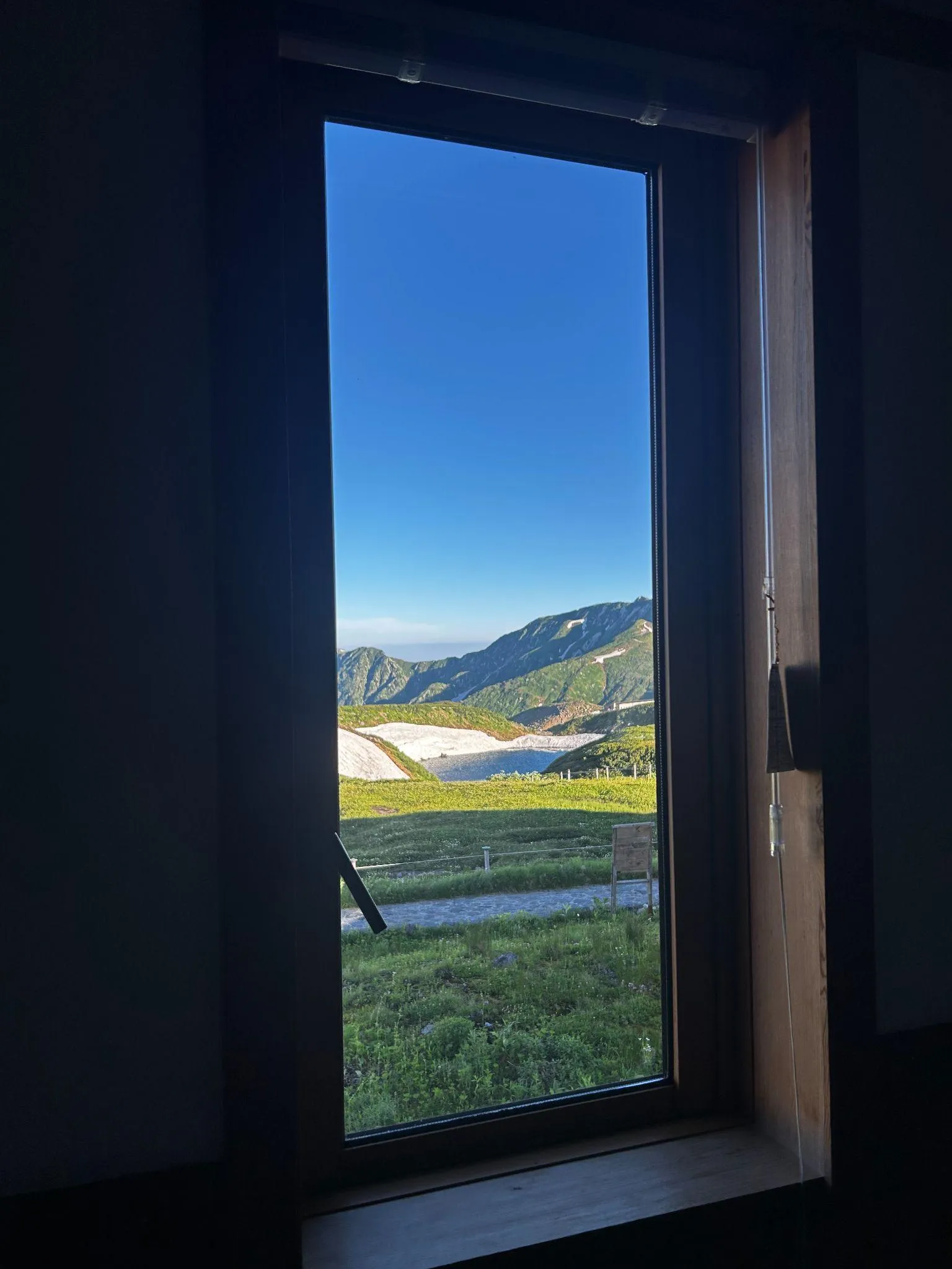 2時間半ほど雪渓の上や石畳を下り、2日目の宿泊施設である室堂山荘に到着しました。この小屋は室堂ターミナルから10分ほどの場所に位置し、温泉に入ることができます。
