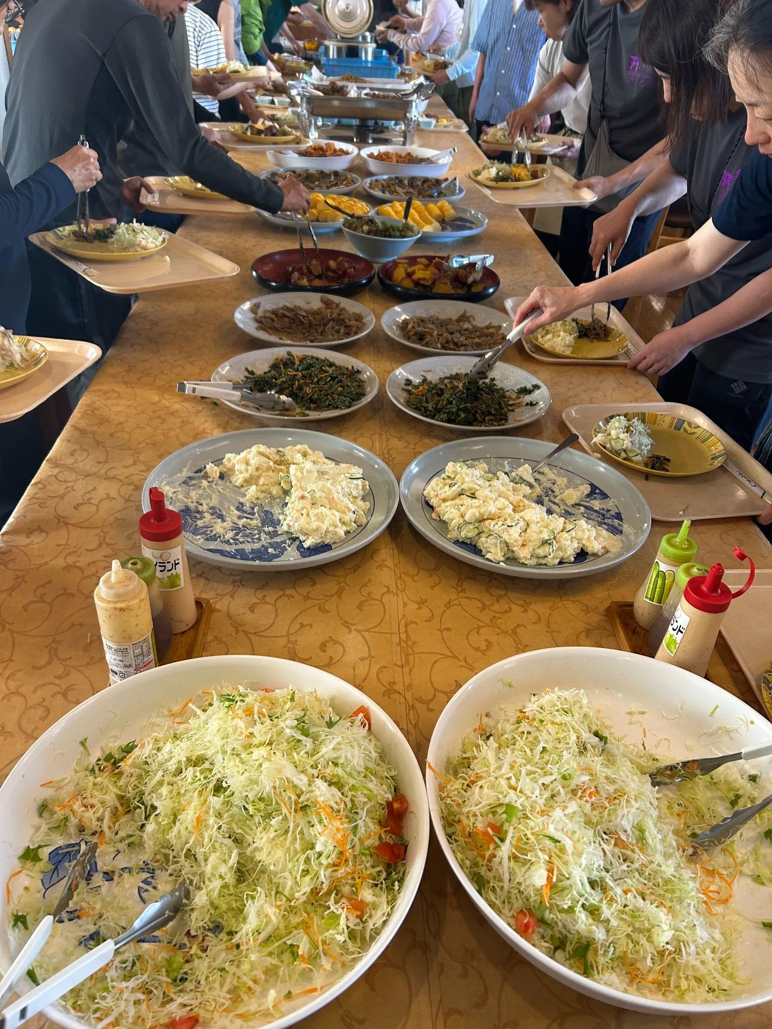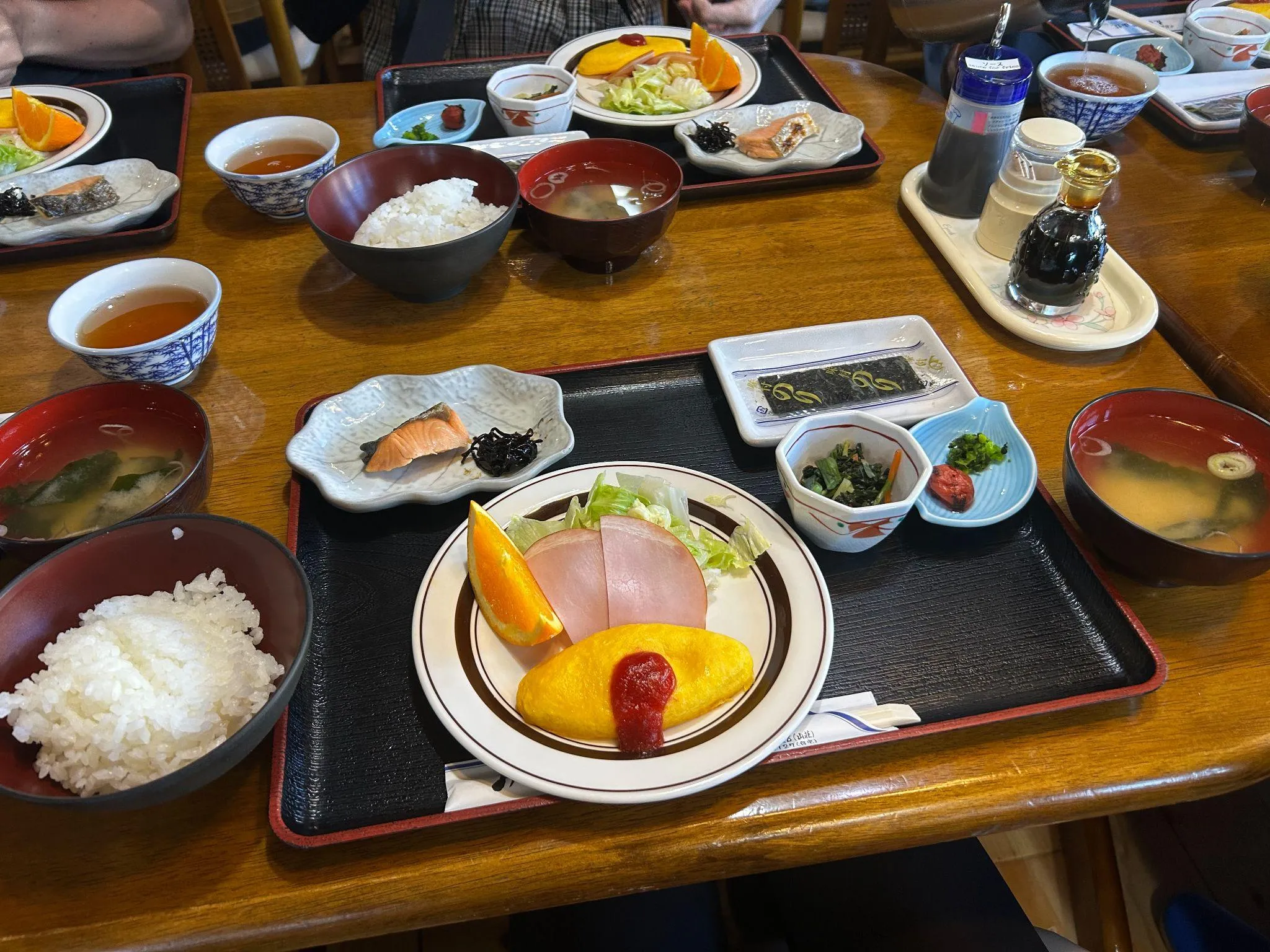 朝食はバイキング形式で、長い行程に備えて栄養あるご飯を各々盛っていきます。
