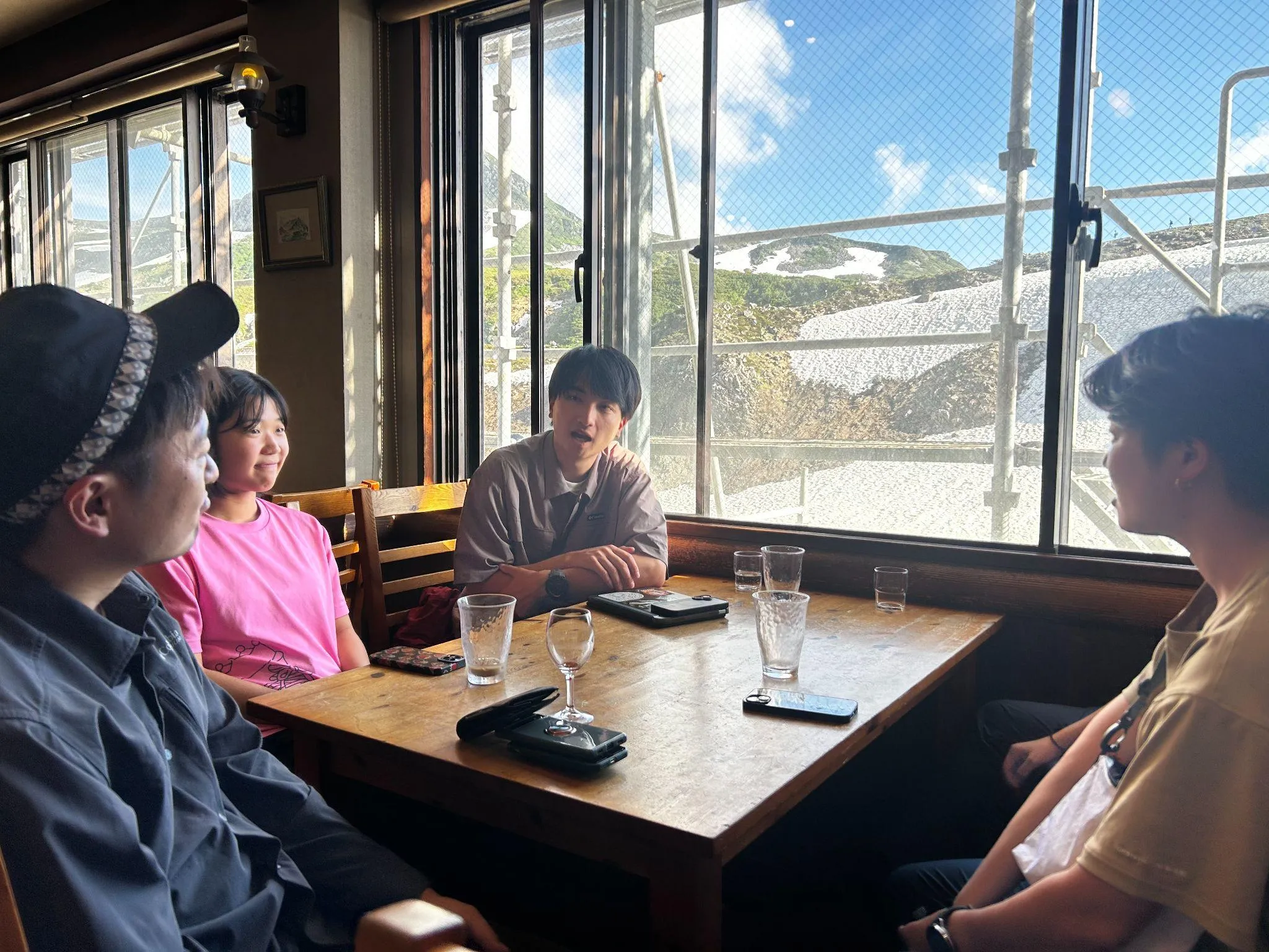 小屋に着いてからは談話室で飲み物を片手に経験談に花を咲かせます。キリマンジャロを登頂した方は、山中の様子やその後訪れたサファリの話をしてくださり日本では味わえない光景に思いを馳せました。