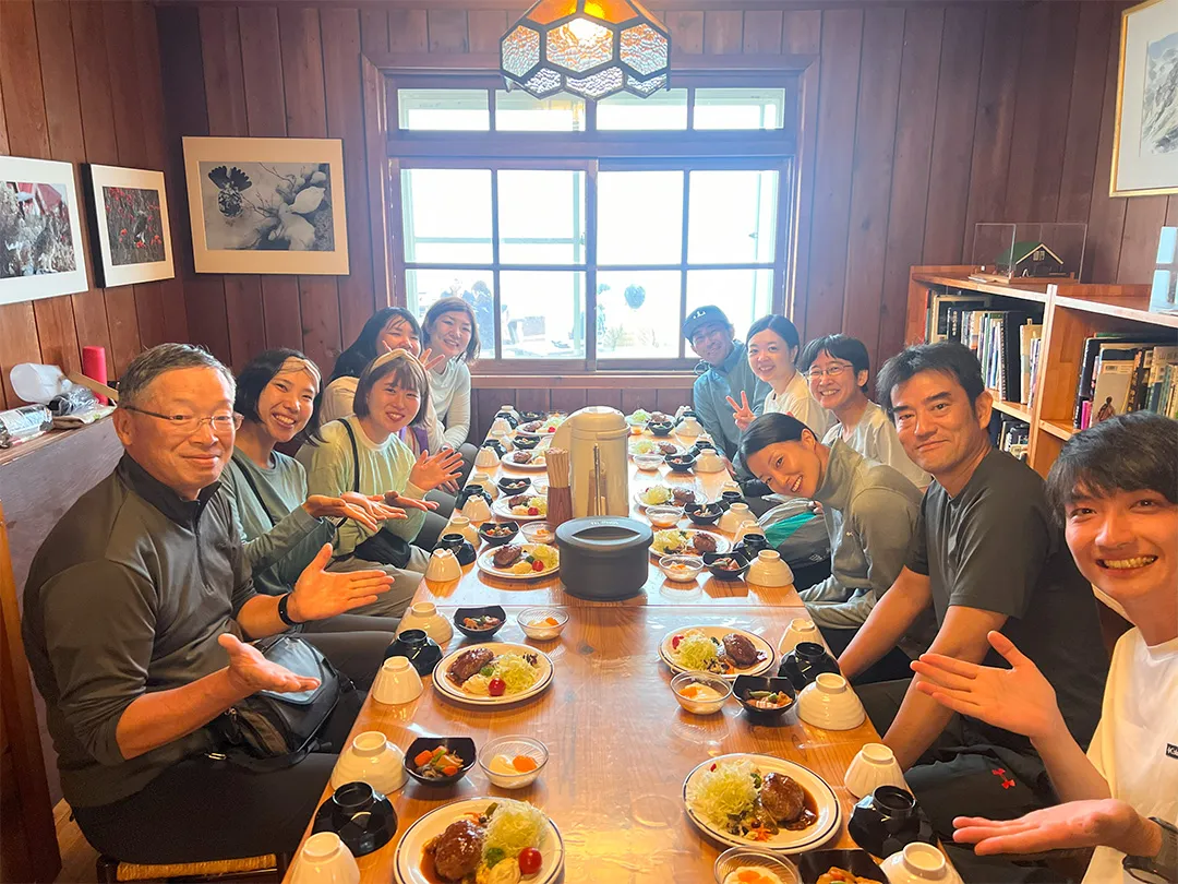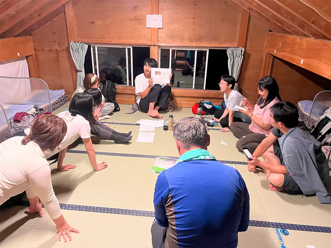 今回は山小屋泊が初めてという方も多く、「どんな雰囲気なんだろう?」とワクワクしながらチェックイン。木のぬくもりのある空間と山小屋ならではの温かいおもてなしに、安心感と居心地の良さを感じました。
