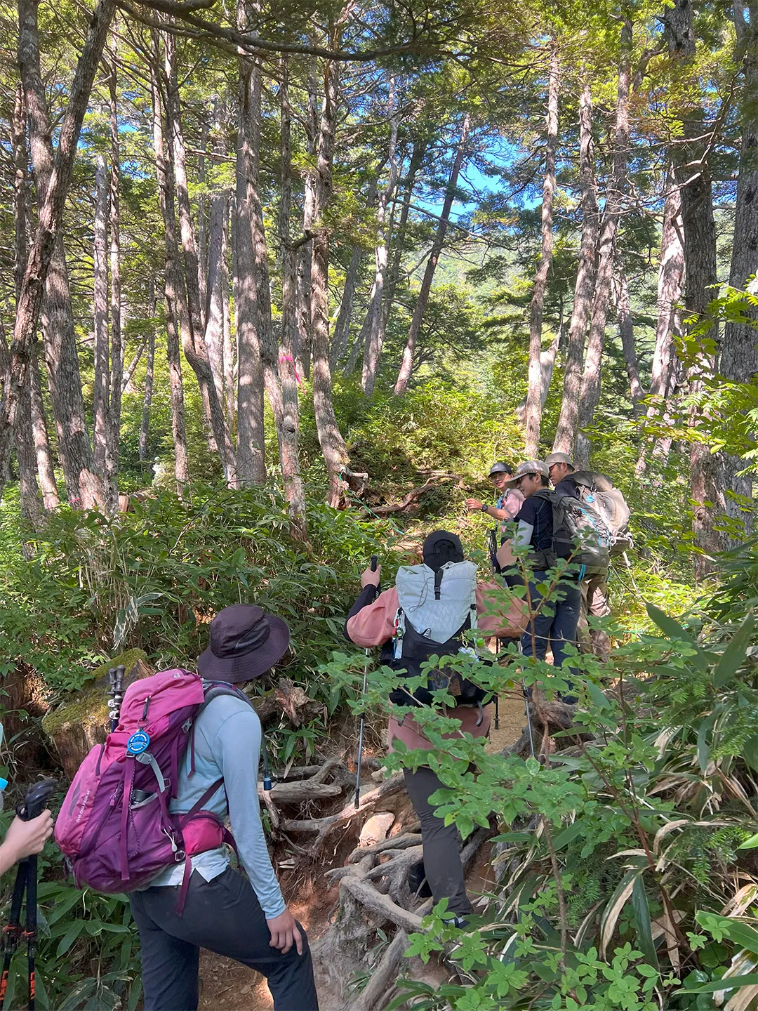 ザックの背負い方を見直し、シューズの紐をしっかり結んだら、登山開始です。
