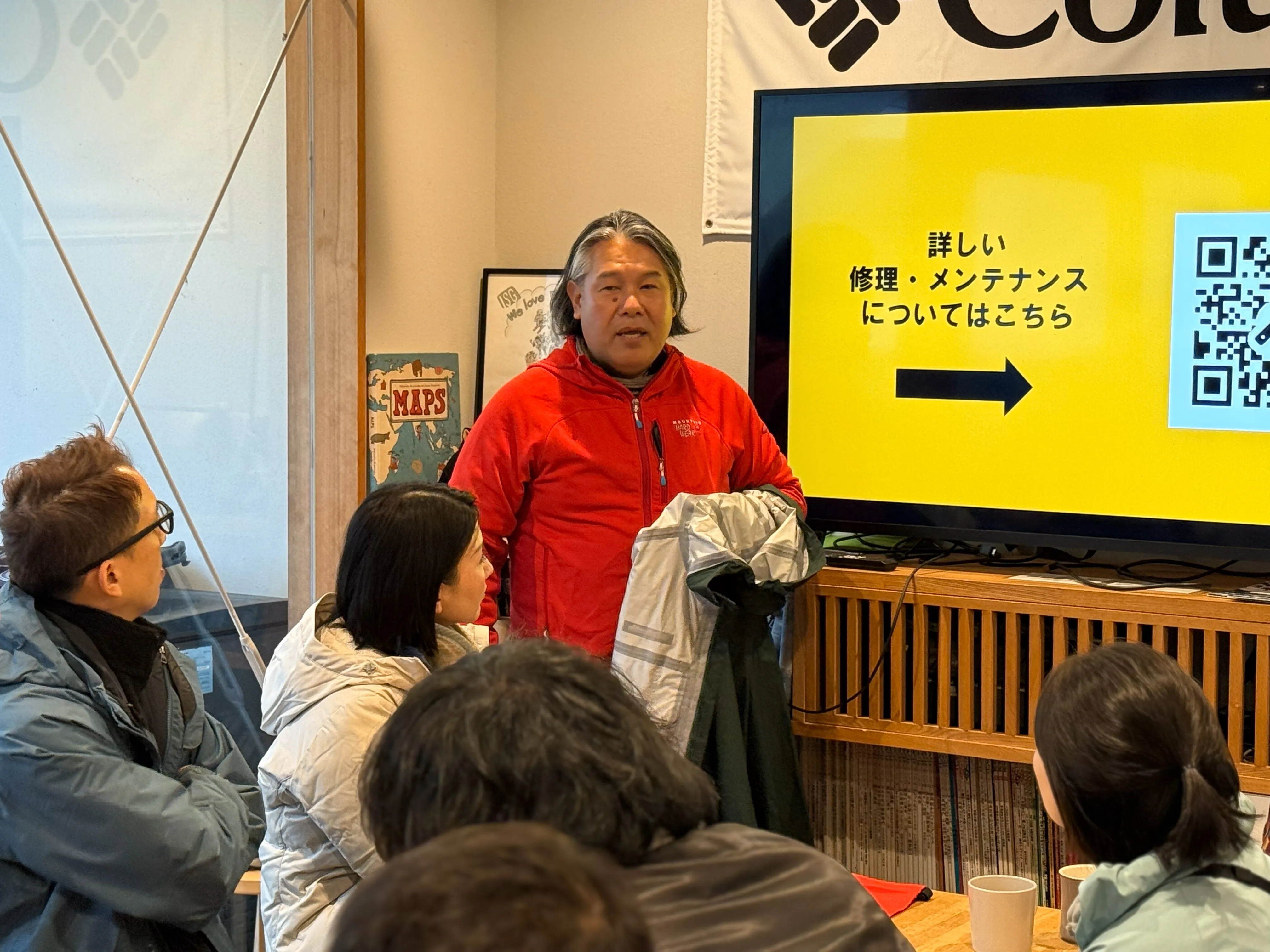 また、カスタマーリレーションズ担当者によるシューズやウェアのメンテナンス講義も実施。道具を長く使うためのケアの重要性が紹介され、「家にあるものでメンテナンスできるのか?」「頻度はどれくらいが適切か?」といった実用的な質問が相次ぎ、参加者の皆さんの“道具への向き合い方”が大きく変わった印象を受けました。