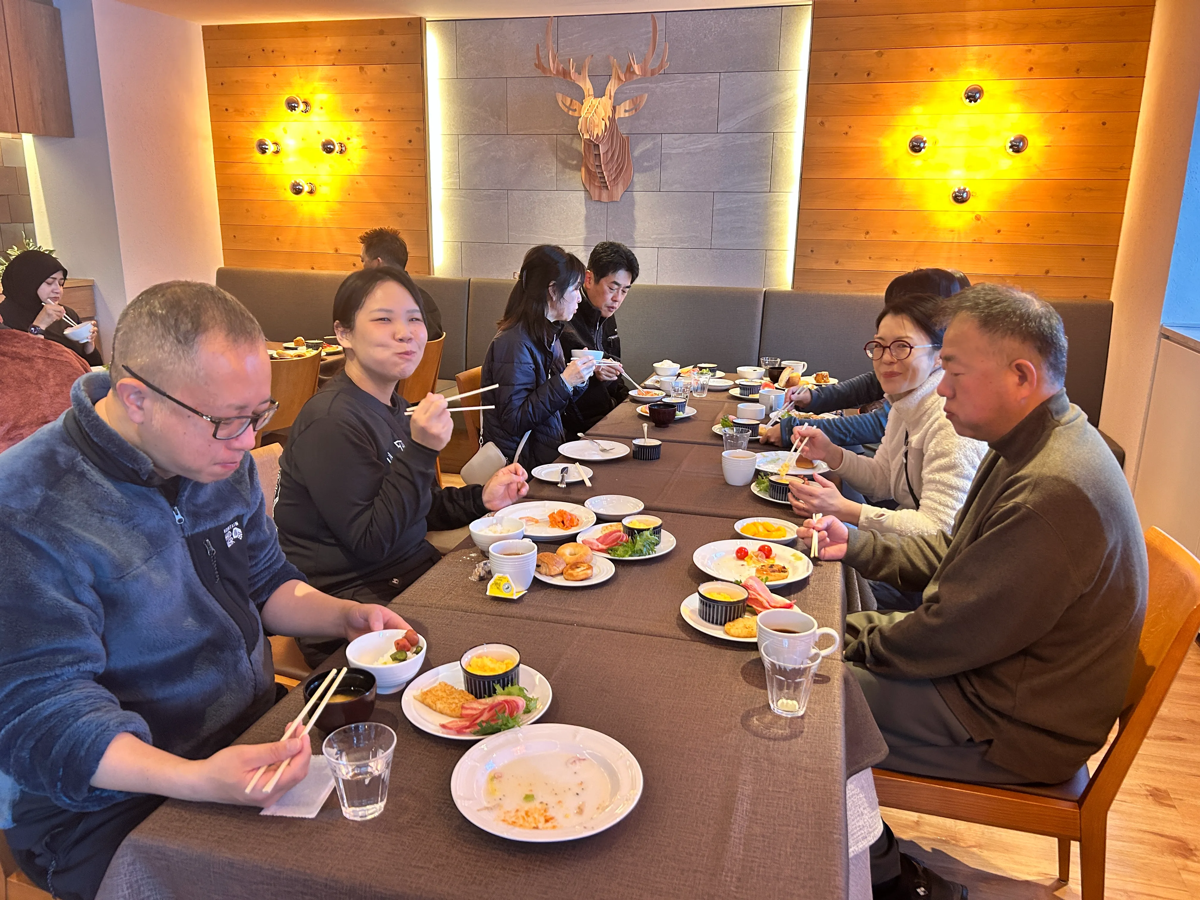 講義後に露天風呂付きの温泉で体も温まったところで、待ちに待った夕食の時間です!