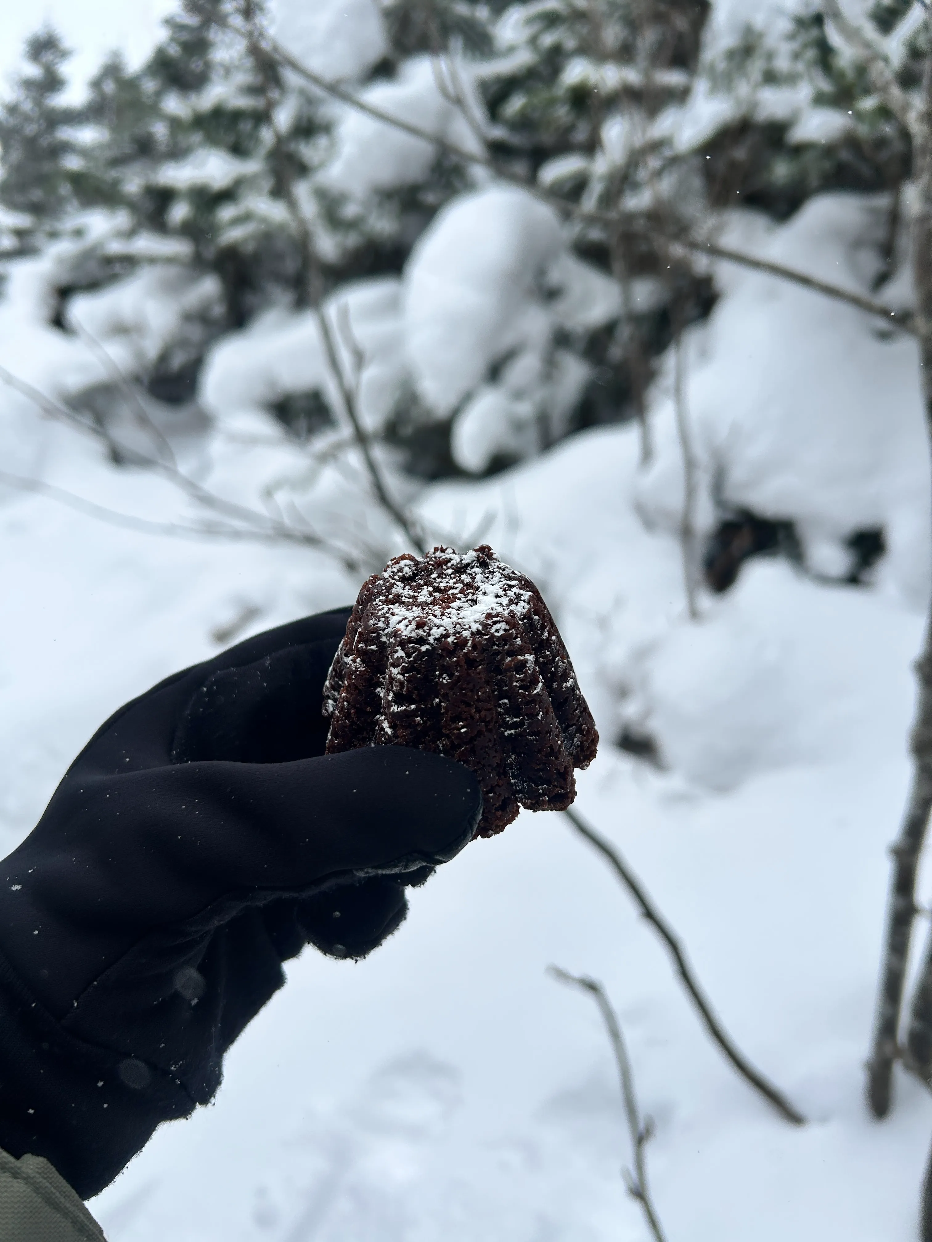 頂上から少し下ったところにあるシェルターにて休憩をとります。ここでザックから取り出したのは、ビジターセンターで受け取ったガトーショコラ!