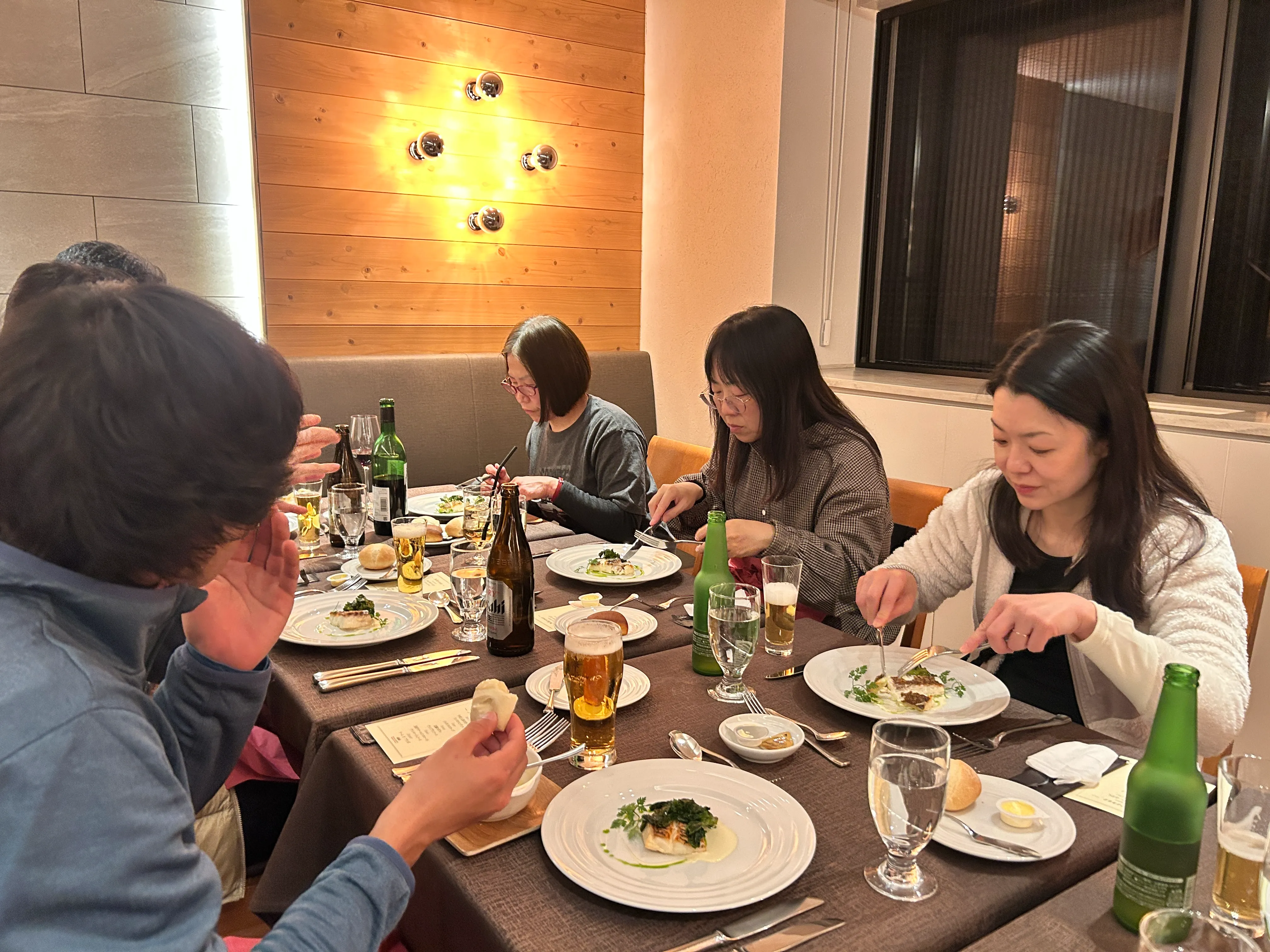地元小諸市や嬬恋村の新鮮な食材を使ったコース料理に舌鼓を打ちつつ、登った山や普段登山をする際の行動食の話で盛り上がりました。