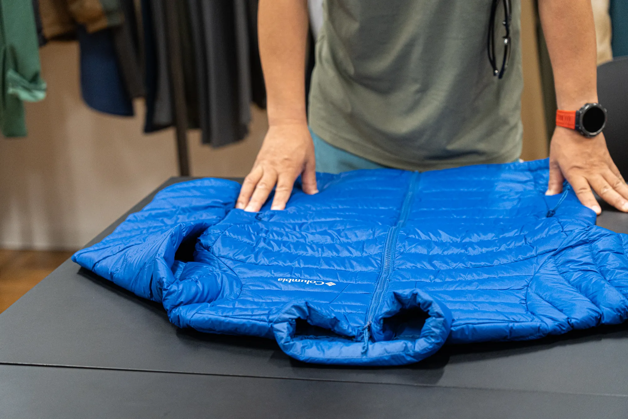 「ダウンジャケットの袋って、なぜかなくなるんですよ(笑)。最初から本体に収納できるのは助かりますね」