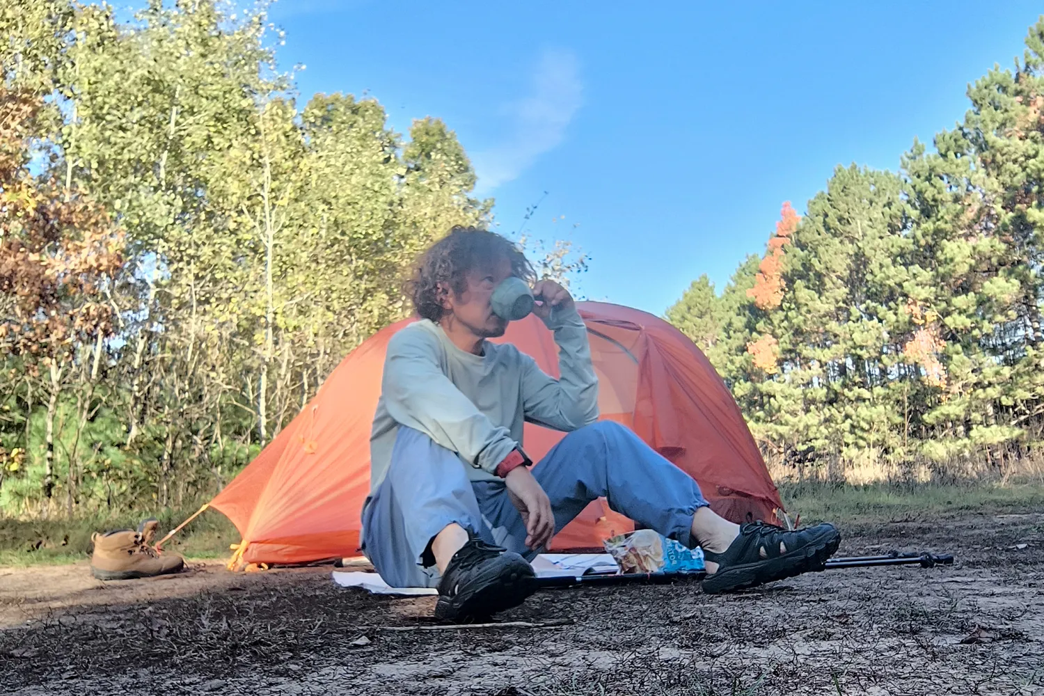 トレイルを歩かない時間は、基本的にサンダルで過ごすという。