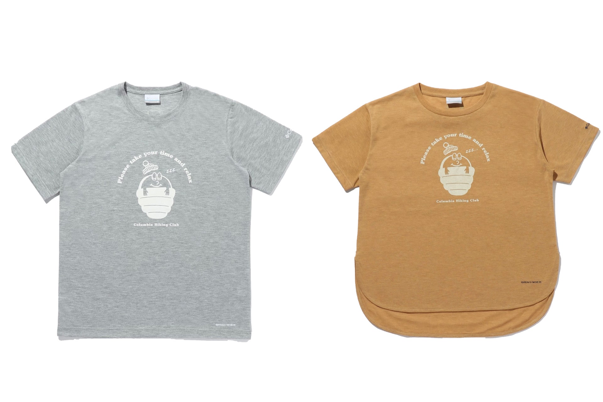 そして今回“Columbia Hiking Club”をテーマに、ジェリーさんとコロンビアのコラボTシャツがリリース。春夏のアウトドアが快適に楽しめるクーリング機能オムニフリーズゼロを採用した『ライトキャニオンオムニフリーズゼロショートスリーブTシャツ』と、速乾性が高いポリエステル100%素材を使った『アフターマウンテンショートスリーブTシャツ』。前者はOn the Mountain(登山時)をテーマに、山を登っているMr.Cと “ORGINARY MOUTAIN LIFE”のワードが描かれた2種類。後者はAfter Mountain(下山後)をテーマに、寝袋で寝てるMr.Cと“ENLIGHTENMENT AFTER MOUNTAIN”のワードが描かれた2種類(各3カラー)がラインナップされています。