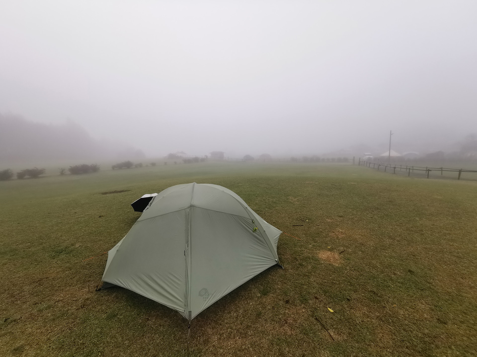 4日目は雨の予報だったので明け方に宿を出発した。なんとか雨が降る前に大野路キャンプ場にチェックインしたのは日曜日の午前中だった。キャンプ場には200張り程のテントやタープでごったがえしていたのだったが、午後から降り出した雨に、あんなにあったテント広大なテントサイトには10張り程まで減っていた。