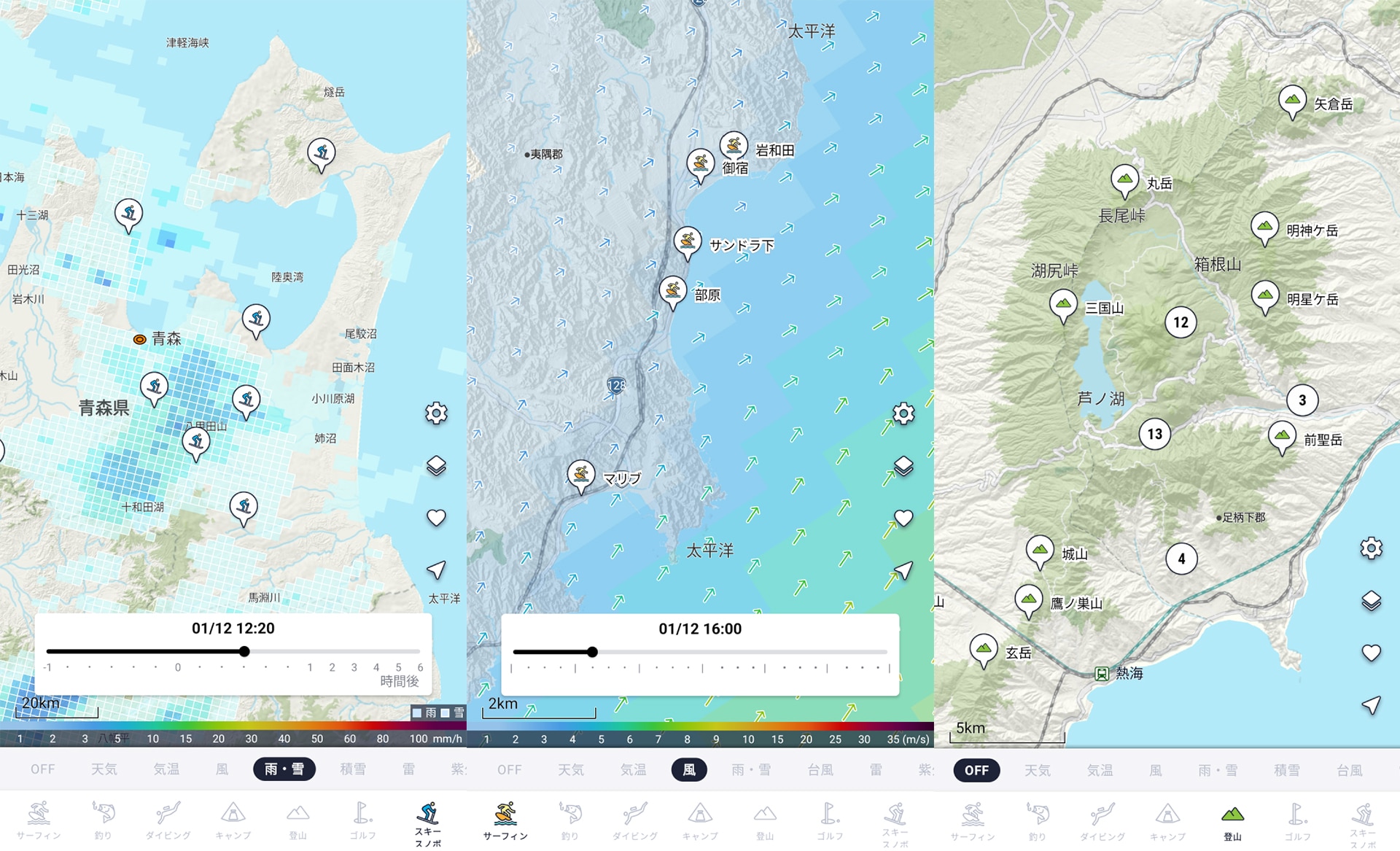 アウトドアでのアクティビティを楽しむ際に、必ずチェックするものといえば“天気”で、事前にしっかりと調べて計画を立てることが大切です。ナビタイムジャパンが開発した『ACTIVITY MAP by NAVITIME』は、釣り・サーフィン・ゴルフ・キャンプ・登山・スキー&スノーボード・ダイビングという7つのアクティビティに対応したアプリで、全国で約2万5000箇所のアクティビティスポットに対応しています。
