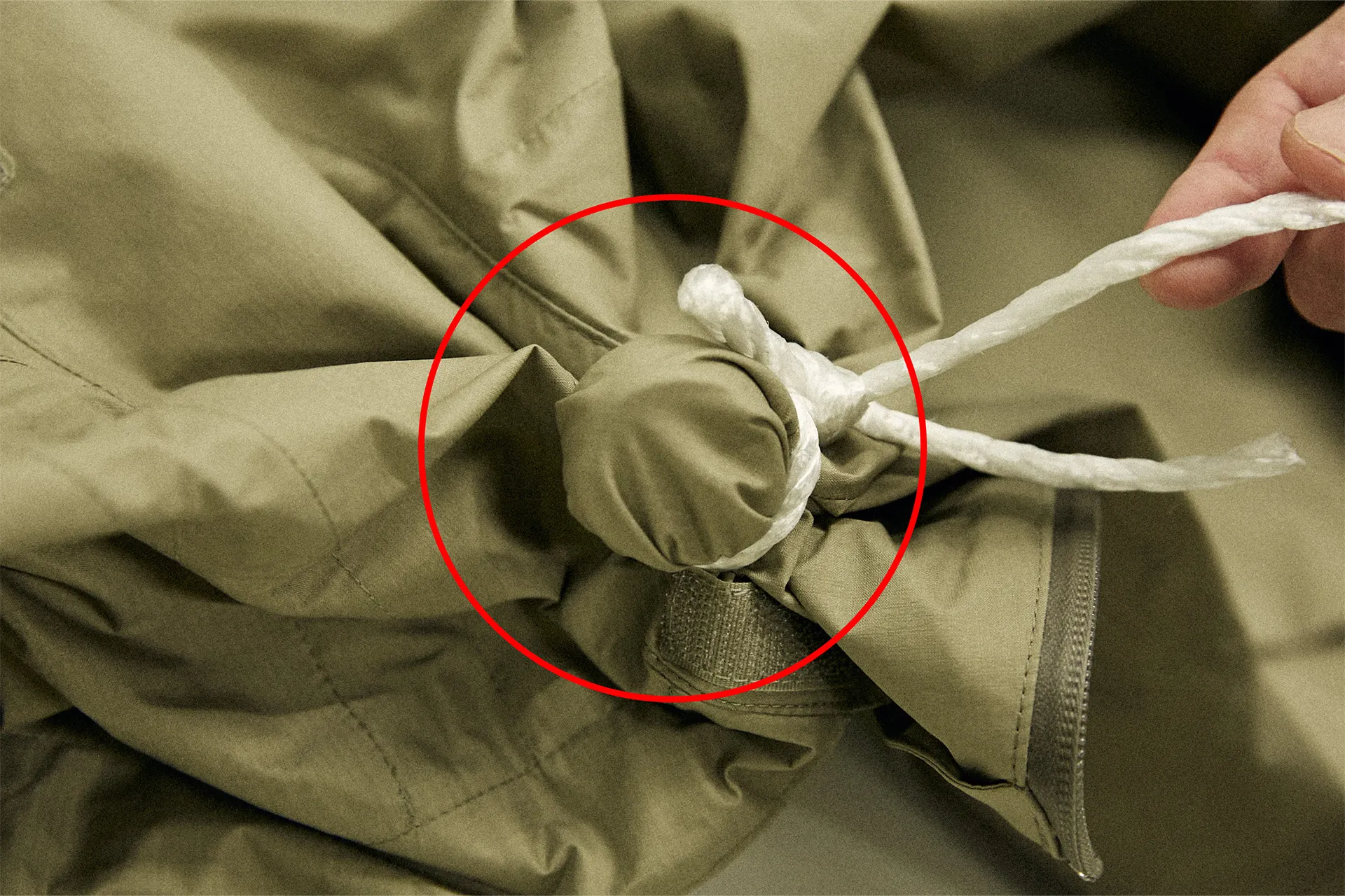 災害時の備えは、特別な装備や知識が必要だと思われがちですが、実はアウトドアで使う道具や知恵が、そのまま防災にも応用できます。ここでは池田さんと根本さんに、「アウトドア×防災」の視点で、日常にも取り入れやすい実用テクニックを教えていただきました。1.レインジャケットでつくる、簡易タープの張り方