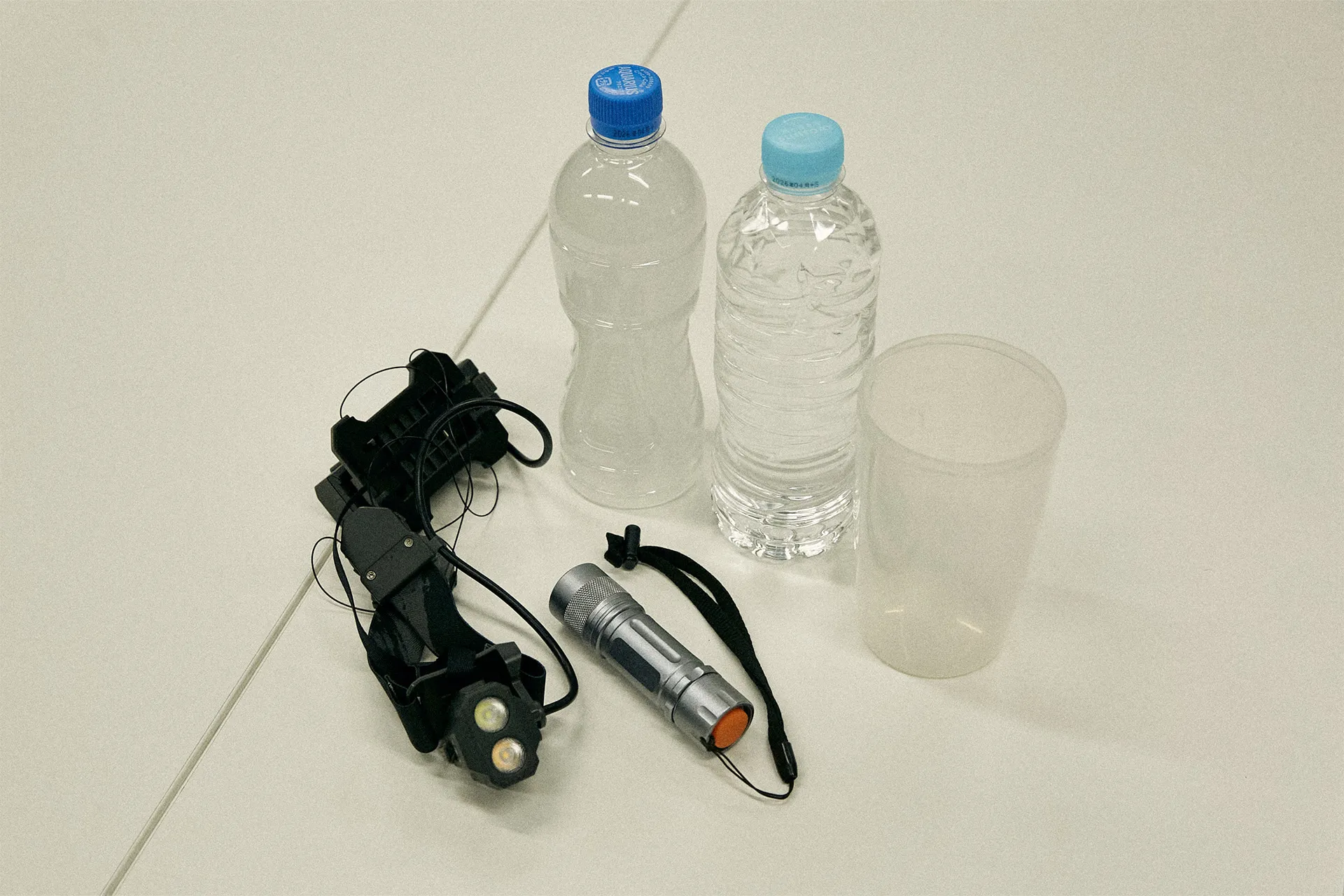 1.ヘッドライトやスマホを上向きにして、その上にプラスチックカップを被せる