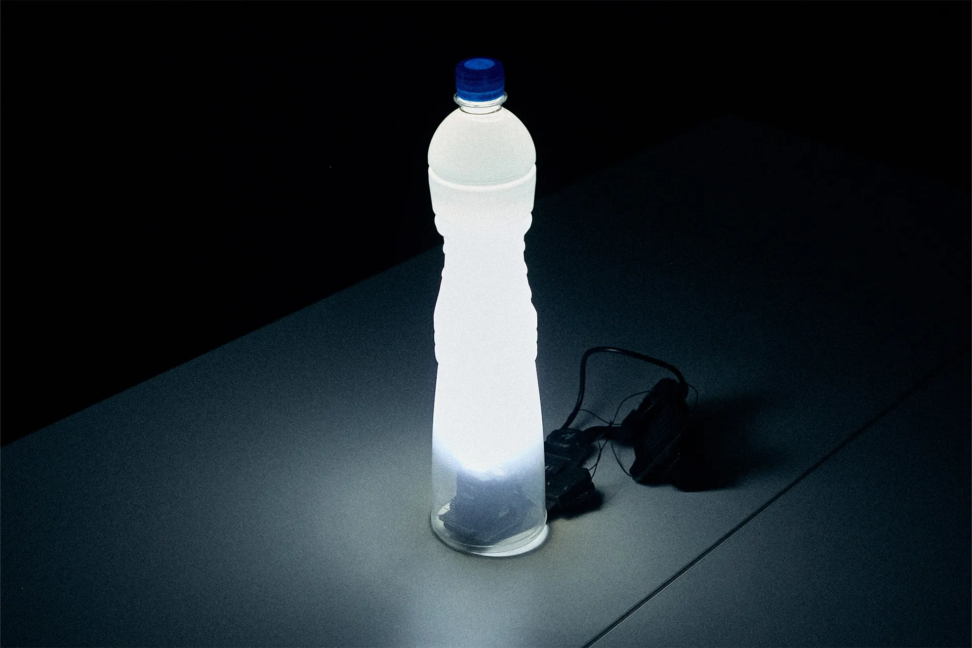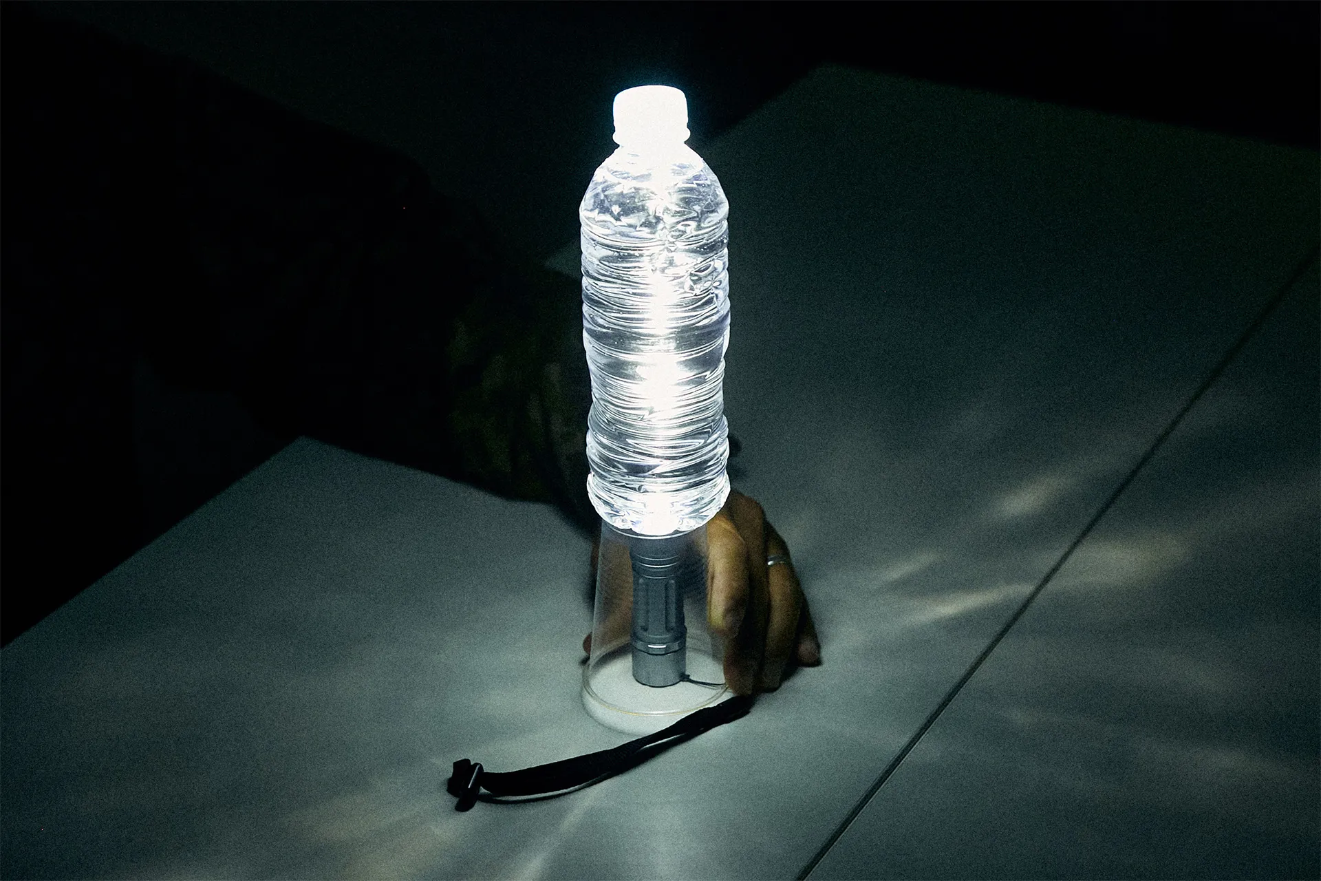 ライトの上にプラスチックカップをかぶせ、その上にペットボトルを置くと……