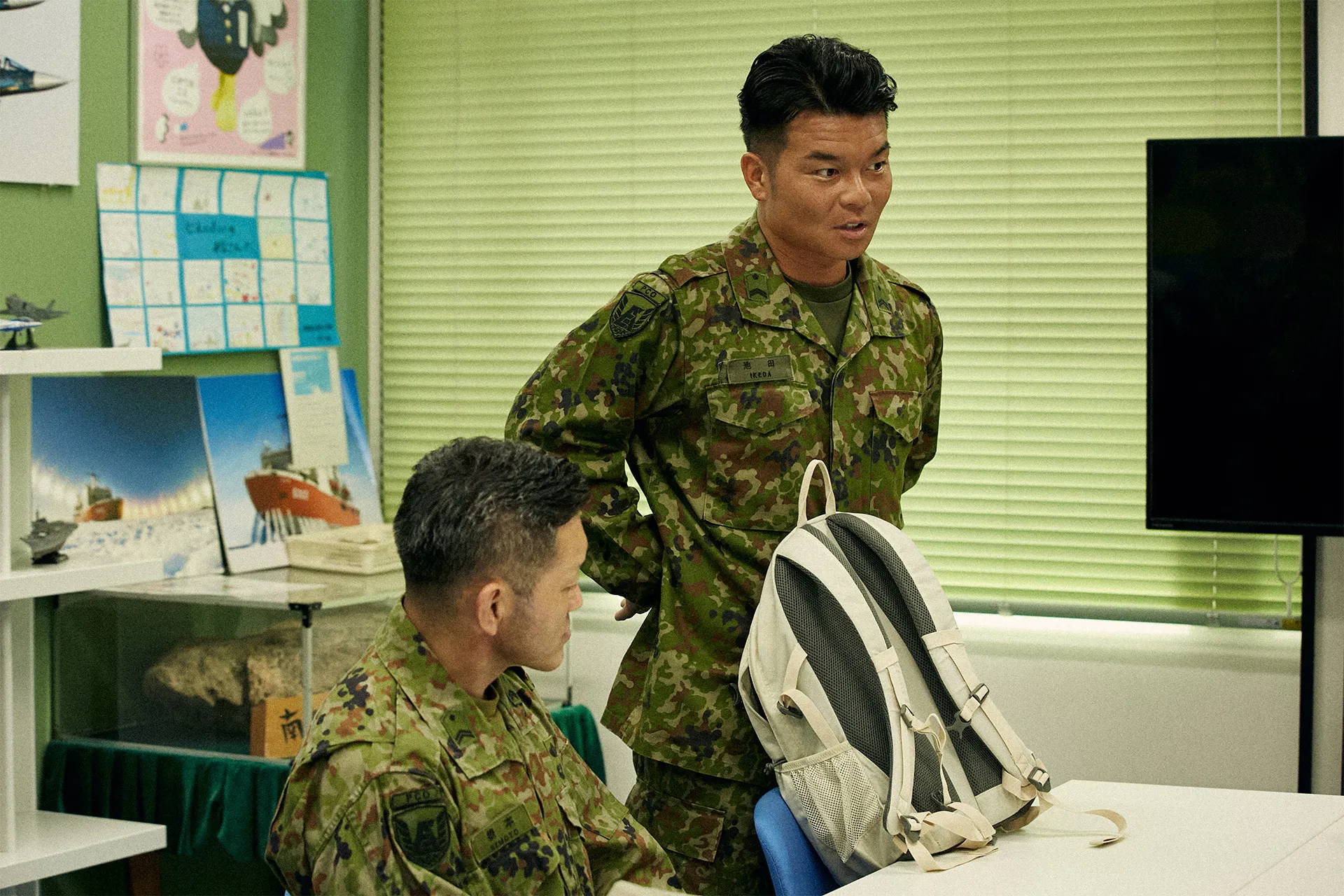1988年生まれ、東京都出身。2007年入隊。米軍との共同訓練や各地での災害派遣を経験し、現在は防衛省自衛隊東京地方協力本部広報係を務める。