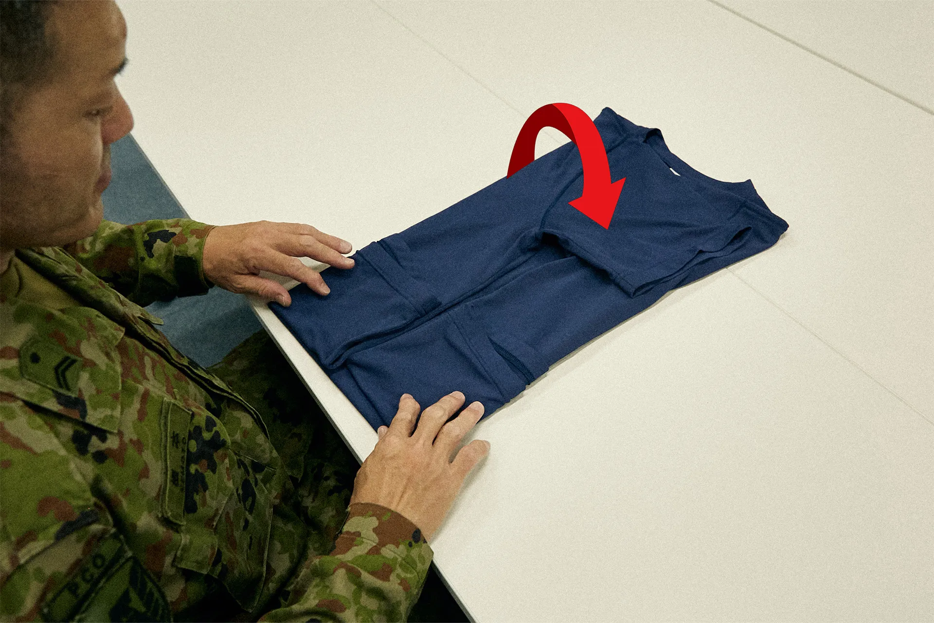 2.Tシャツの左右を真ん中に向かってたたむ。