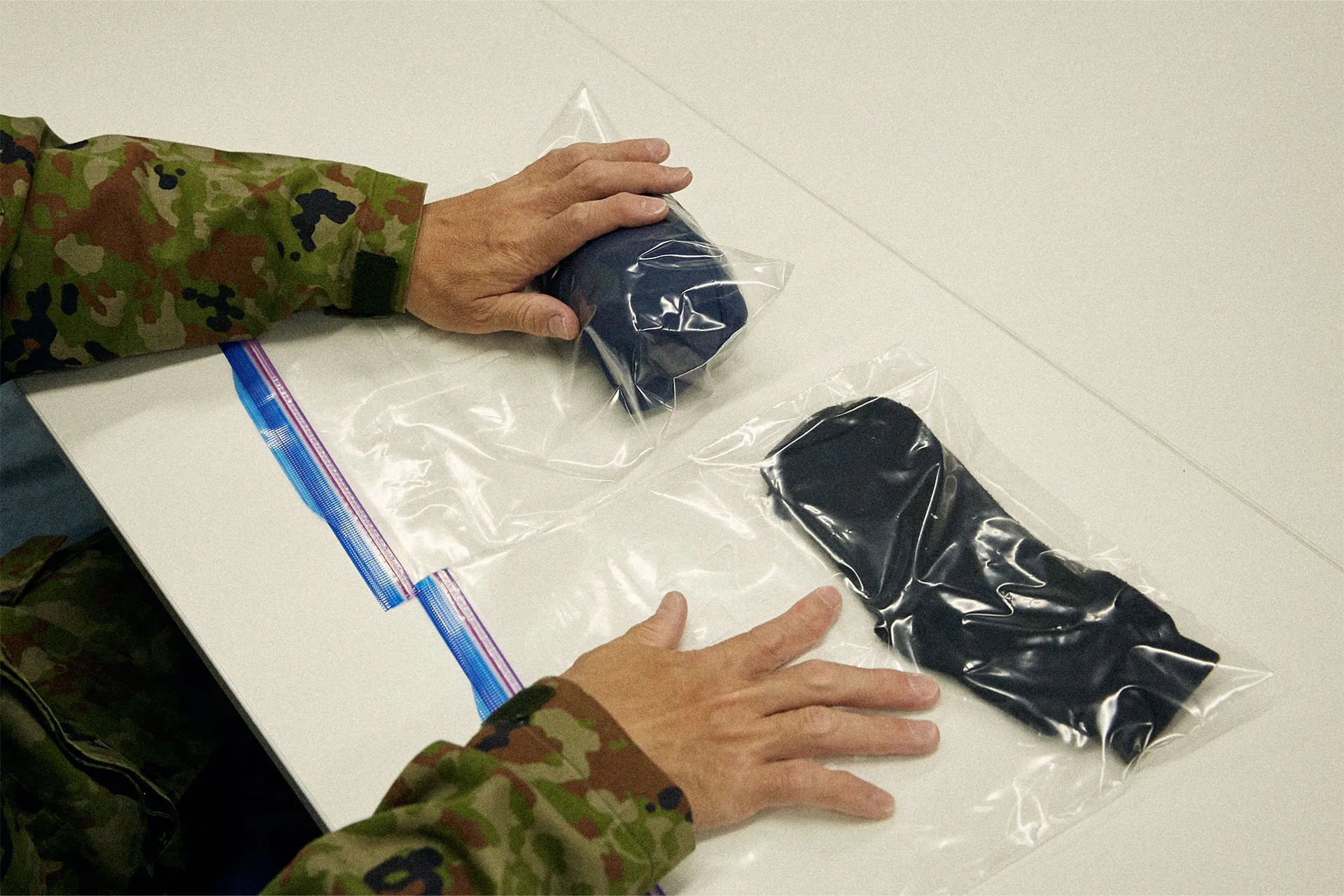 「自衛隊では、衣類の水濡れを防ぐため、衣類を一枚ずつジッパー付き保存袋に入れ、それを一日ぶんごとにまとめてさらに袋に入れて、さらに大きな防水袋に収納します。野外で長期行動するとき、濡れた服は寒い時期は低体温症や凍傷、暑い時期は体力の消耗につながるため、防水対策は重要です」(根本)