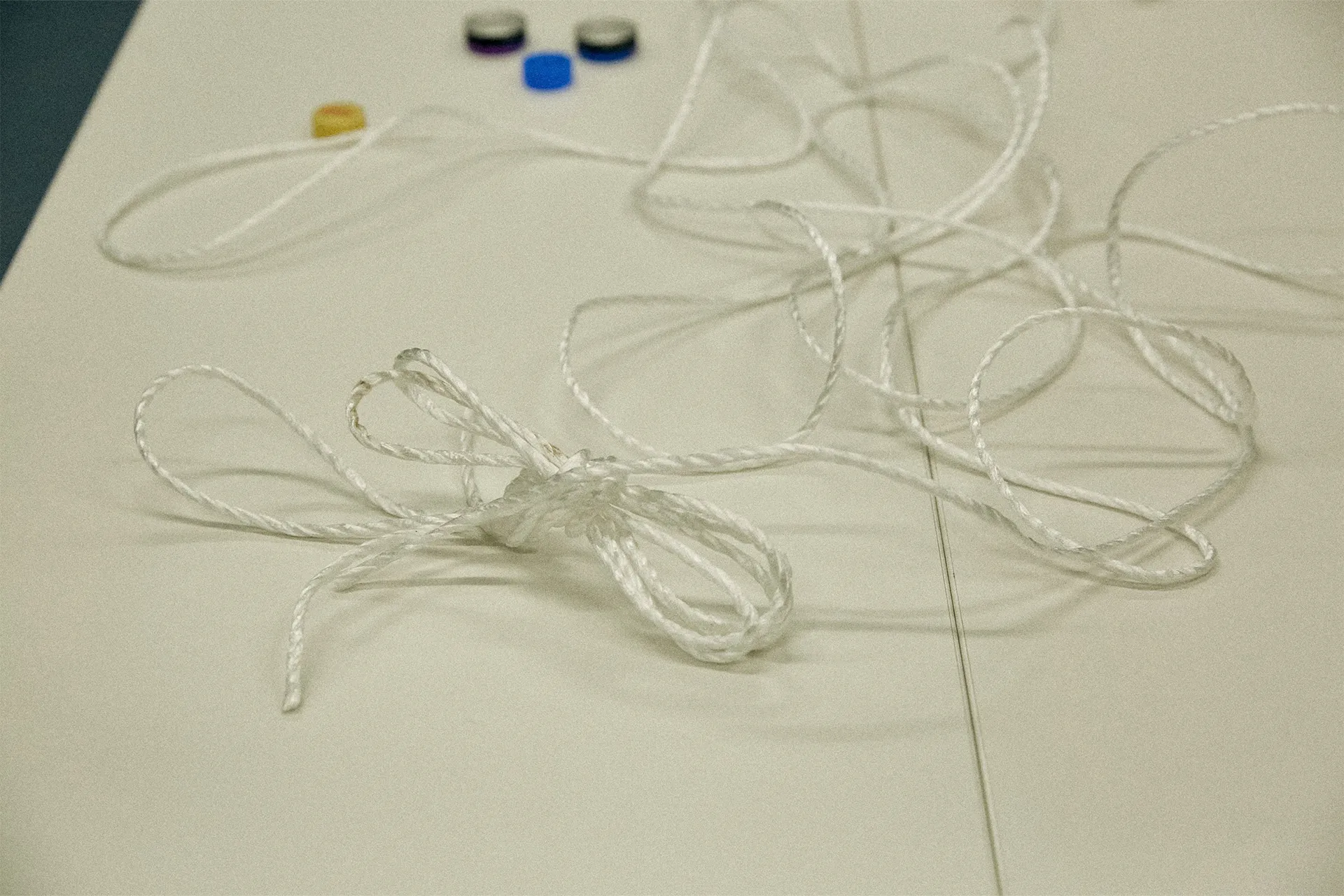 2.もう一度結び、その結び目の途中にボールペンを差し込む
