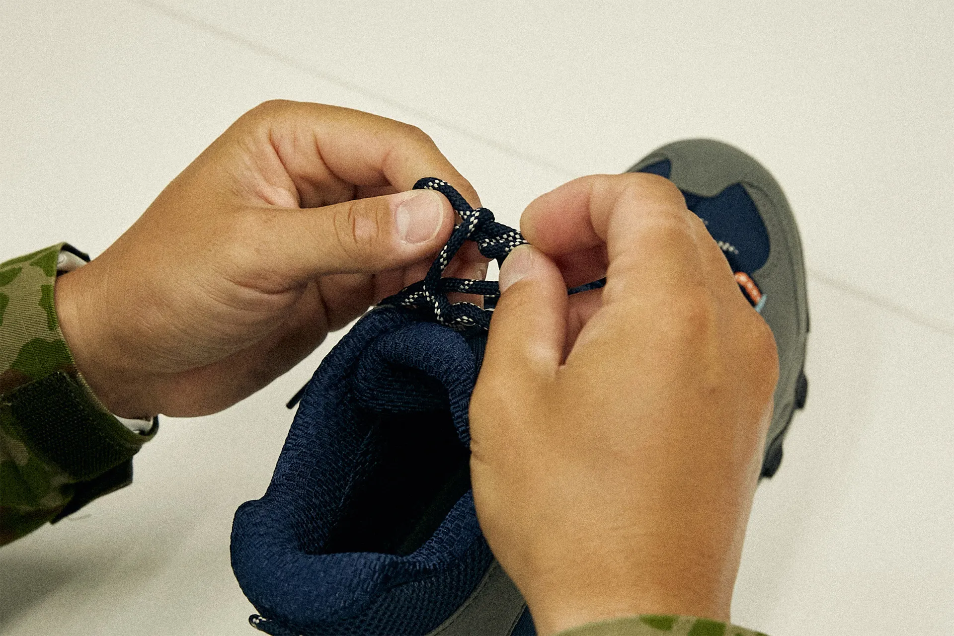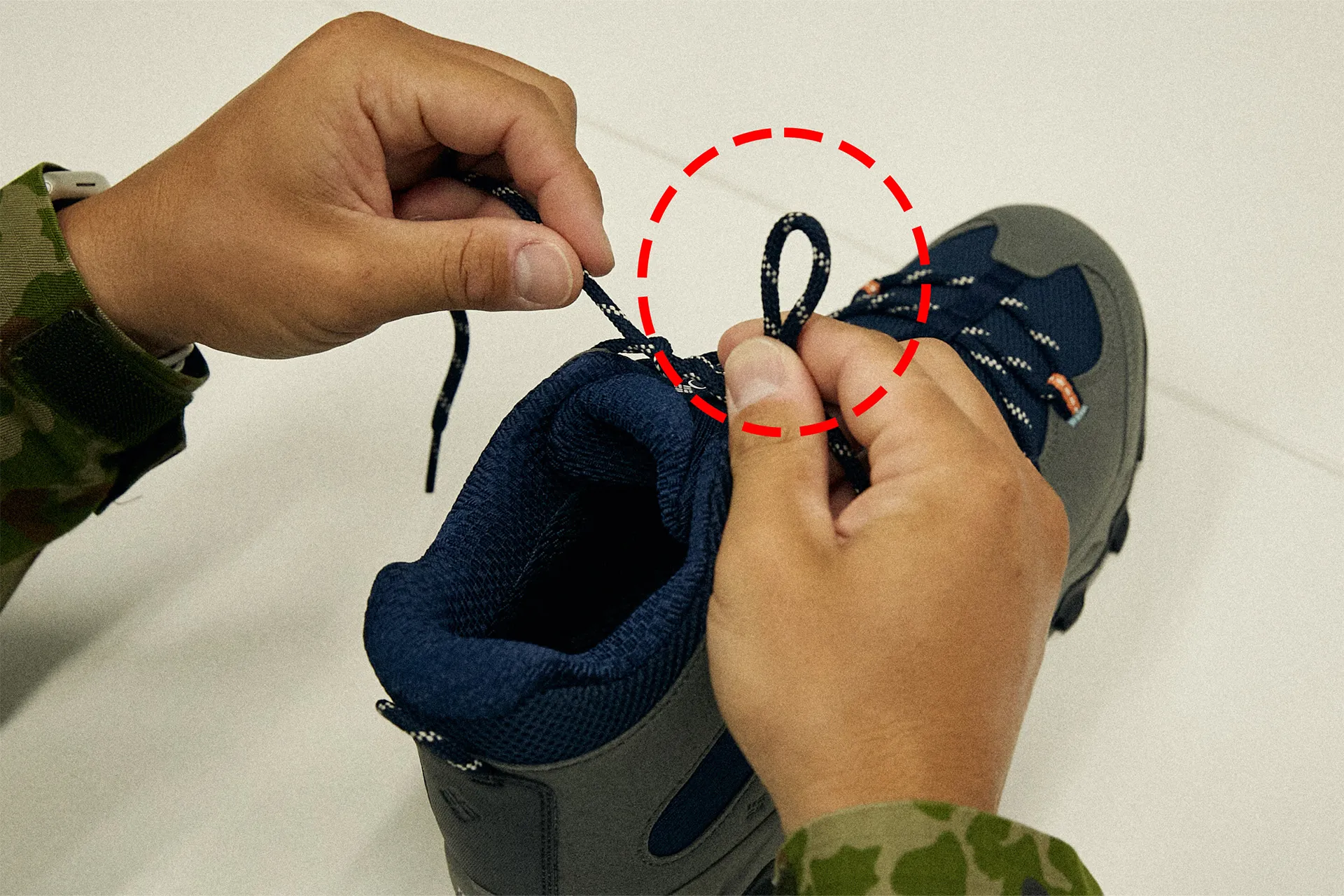 まずはちょうちょ結びの要領で、靴ひもを結ぶ